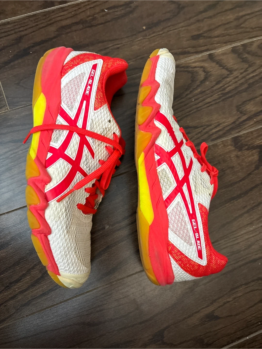 Old badminton/squash shoes from a few years back. Has some stains, a bit worn, but no tears.