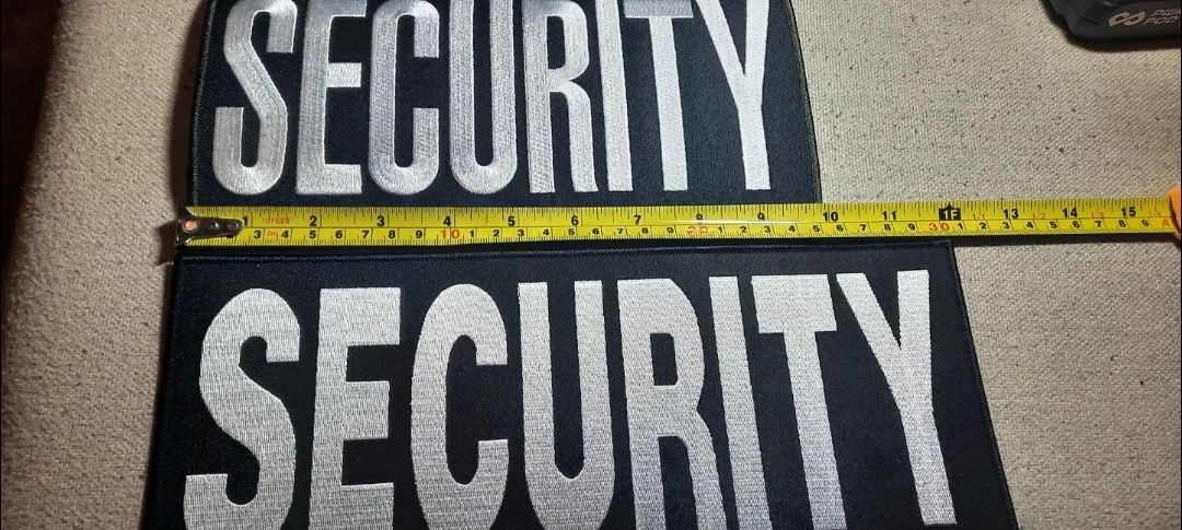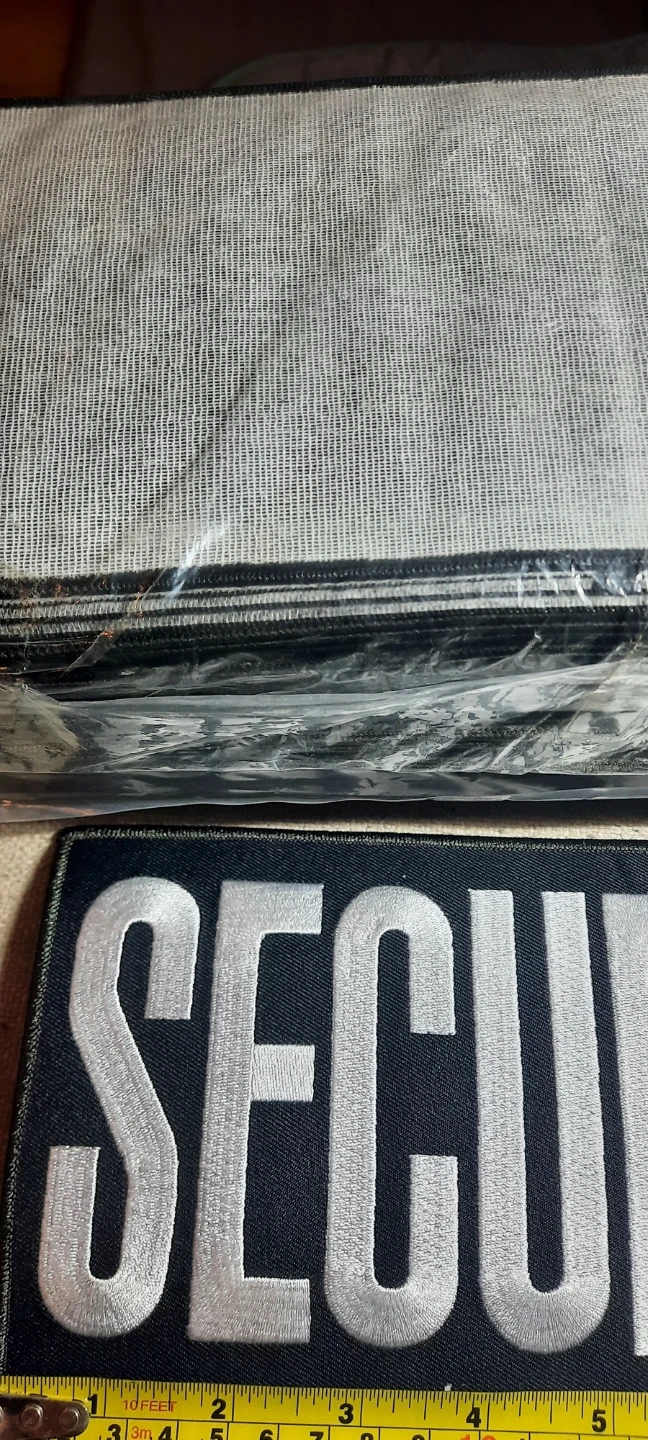 Selling embroadered security patches that are in new condition. They measure approximately 12x4 inches.