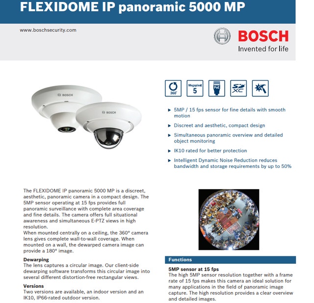 Bosch Flexidome IP Panoramic 5000 5MP IN-W – $800