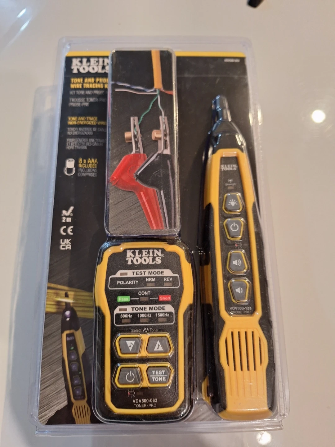 Selling a brand new Klein Tools Tone & Probe Kit! It's the perfect tool for tracing wires and identifying cables. The kit includes the tone generator and probe, and comes with 8 AAA batteries. It's still in the original packaging