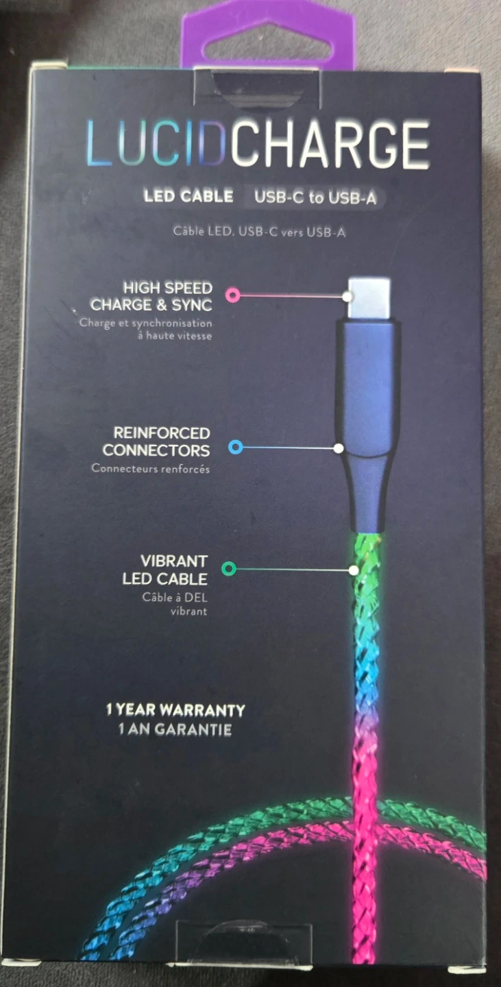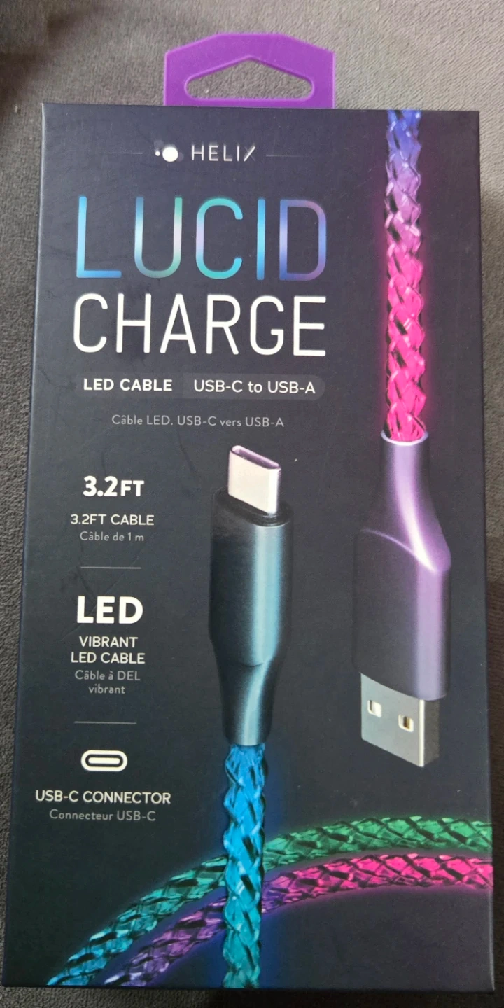 Brand new Helix Lucid Charge LED cable for sale! It's a USB-C to USB-A type cable, 3.2ft long, with vibrant LED lighting. The box is included!