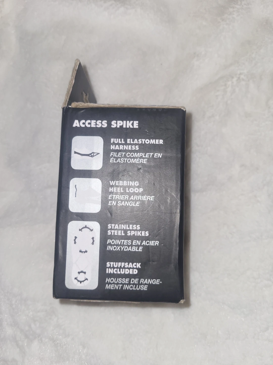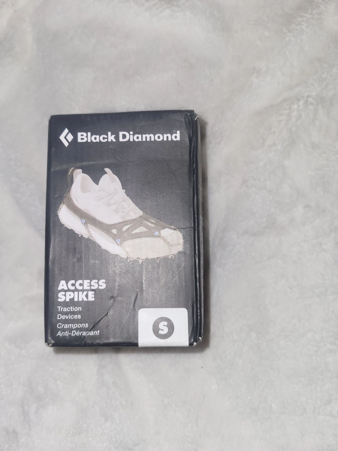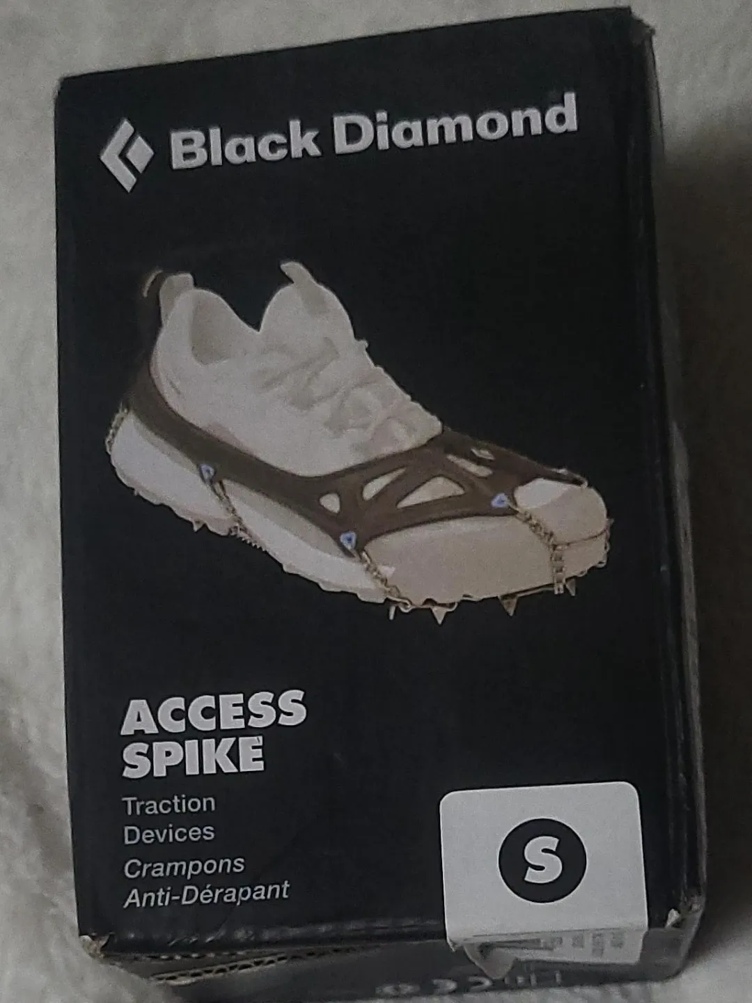 Selling a pair of Black Diamond Access Spike traction devices in size small. These are great for hiking and walking on icy or snowy surfaces. They feature a full elastomer harness, webbing heel loop, and stainless steel spikes. Comes with the original box and stuffsack included!