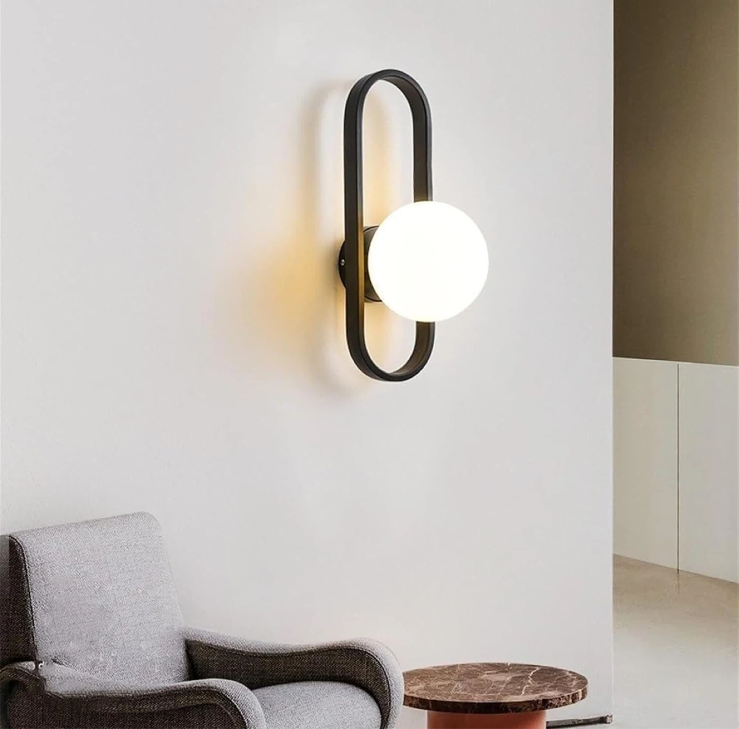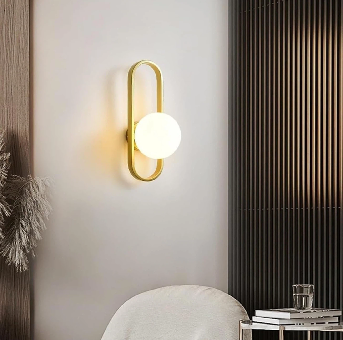 Looking to add a touch of modern elegance to your home? This stylish wall sconce features a sleek iron frame and a soft, glowing light. It's perfect for your bedside or living room wall. The dimensions are 40cm/15.7in in height and 15cm/5.9in in width.