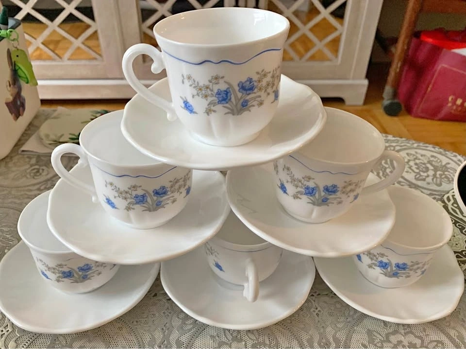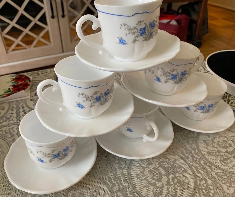 Vintage Arcopal France Romantique Tea Cup and Saucer Sets. Brand new, without a box.
