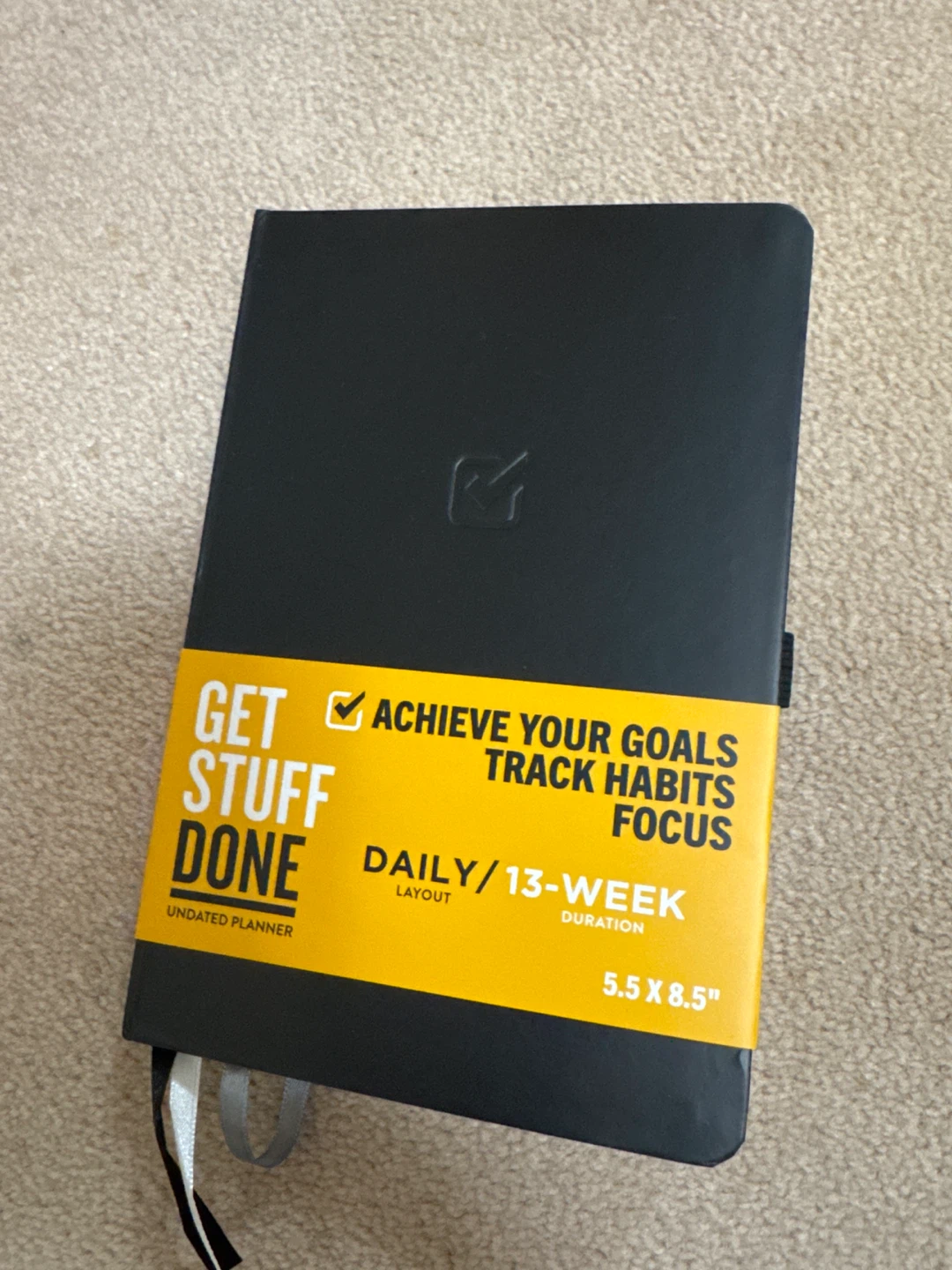 I have a Get Stuff Done undated planner for sale! It's a daily layout planner that lasts for 13 weeks. The planner is 5.5 x 8.5 inches, perfect for tracking habits and achieving your goals. Retails on Amazon for $45….great deal for the new year! #goalz