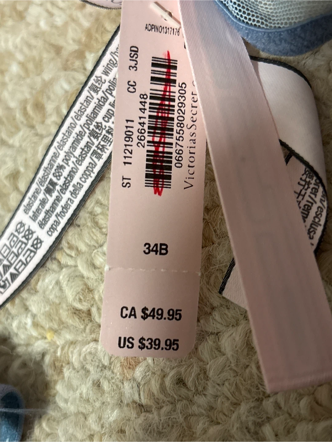 Selling a Victoria's Secret bra in size 34B! It's in great condition and ready for a new owner. The tag shows it originally retailed for CA$49.95. Tags are still on the blue one, never worn. The neon one’s tags are off but never worn.