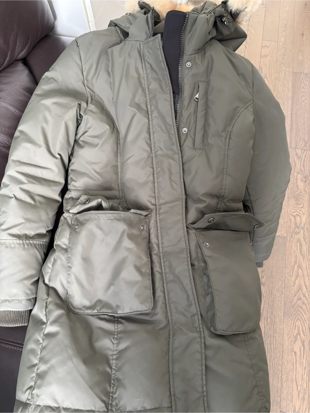 Selling a Pajar Canada down parka in size small. It's in great condition and perfect for the Canadian winter! The coat is a stylish olive green colour with a fur-trimmed hood.