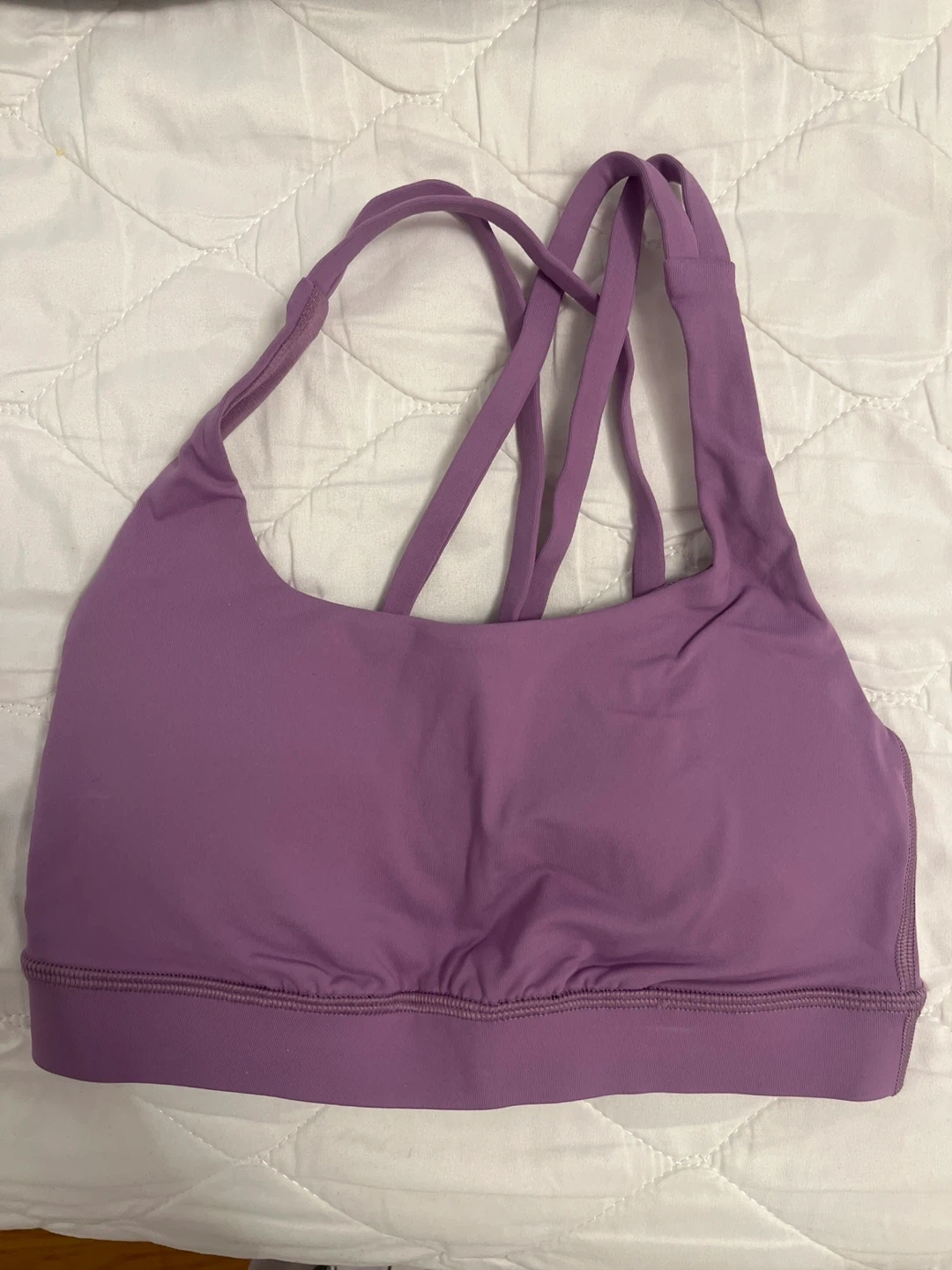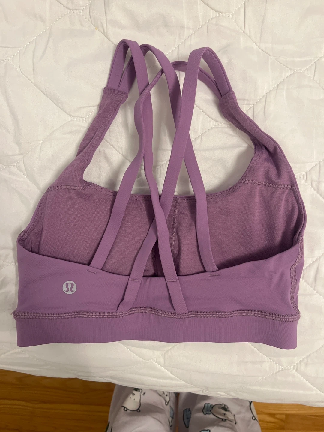 Selling a Lululemon sports bra in a lovely shade of purple! It's in great condition and ready for your next workout. The criss-cross straps in the back add a stylish touch!
