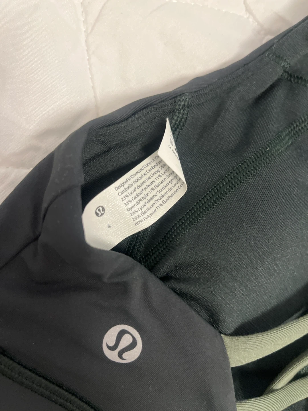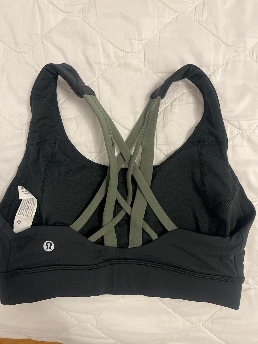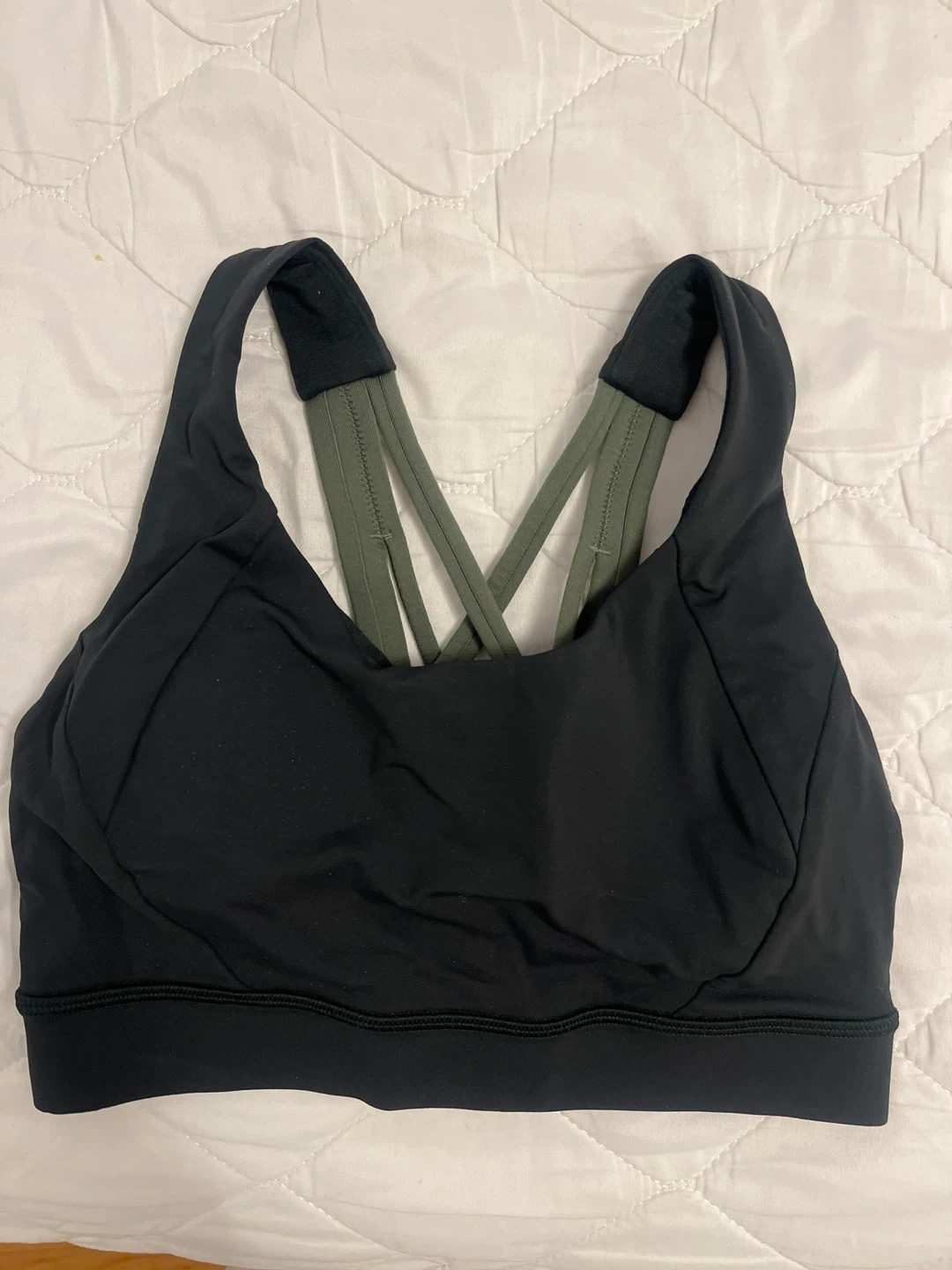 Selling a Lululemon Like a Cloud bra in size 4! It's in great condition and ready for a new owner. It features a black colour with green straps. Made with 89% nylon and 11% elastane. Only worn once.