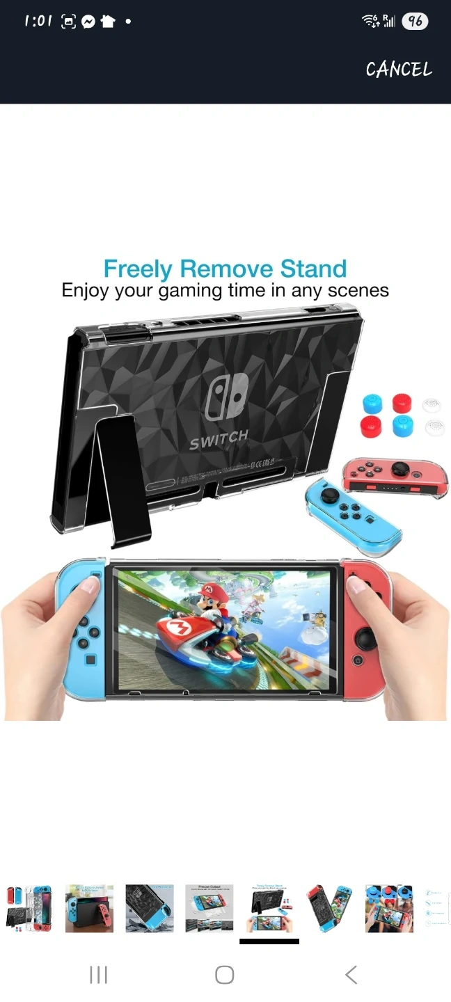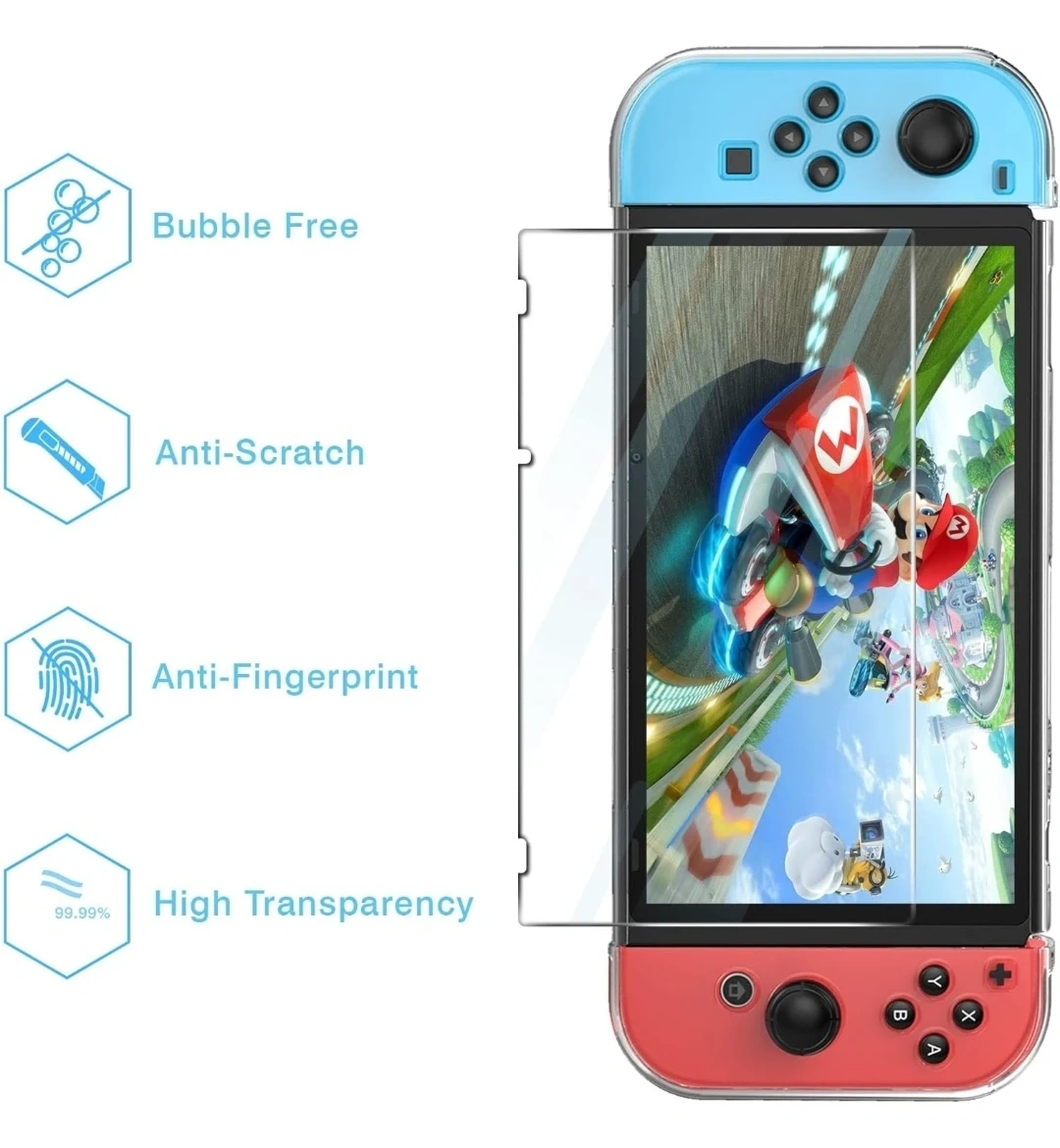 Dockable case compatible with Nintendo Switch. It's a clear diamond protective case cover for controller with a tempered glass screen protector and thumb stick caps. Freely remove the stand to enjoy your gaming time in any scene! It's also easy to dock and free to remove the joycon.