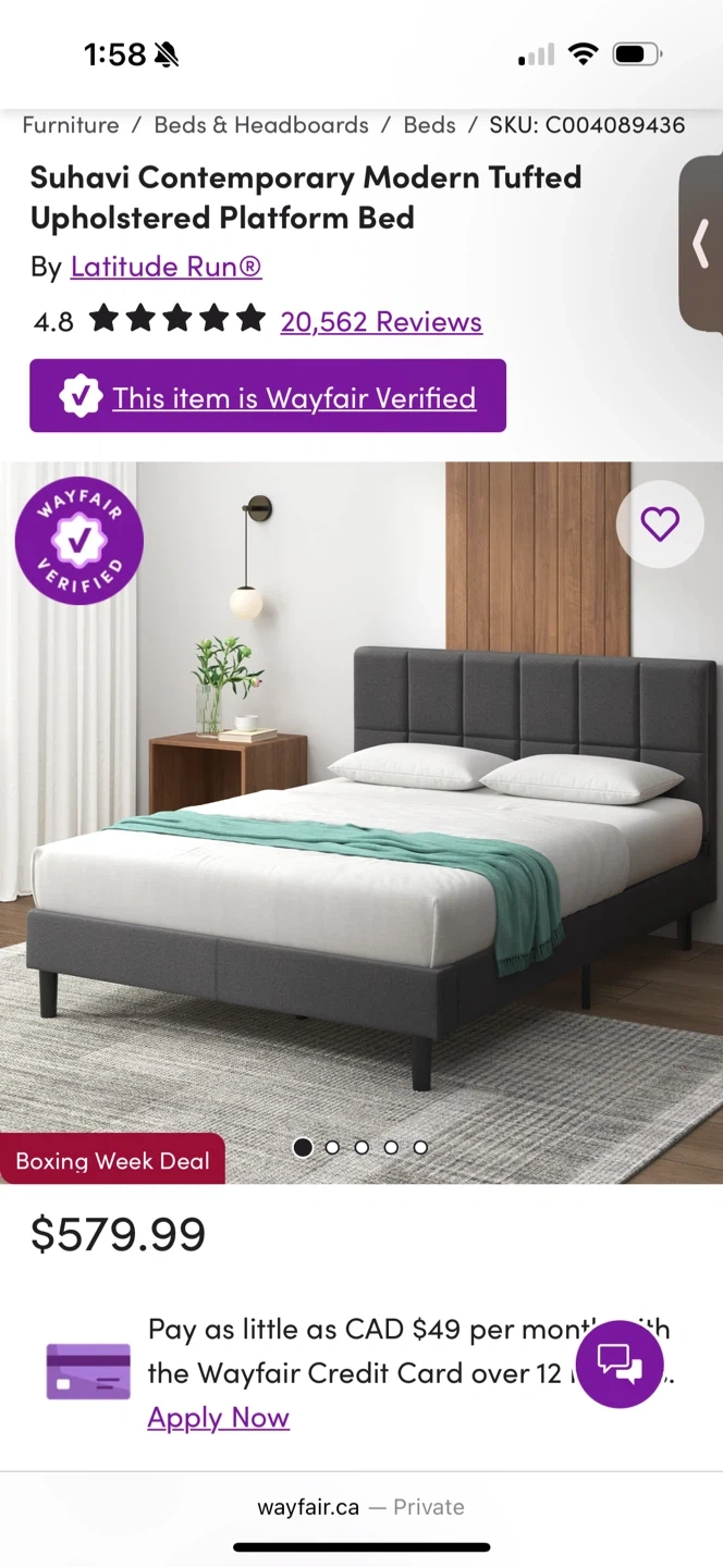Selling a 6 month old queen bed frame + mattress. Looks just like a new one, originally purchased the frame from Wayfair for around $550 and a brand new mattress as well for $350. Selling at a great price due to moving out.