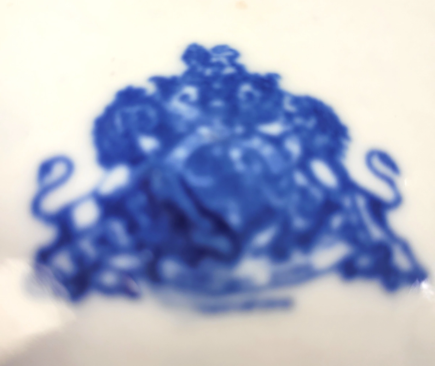 It is made by Victoria Ware Ironstone and features a rich cobalt blue transferware pattern in the classic "Flow Blue" style.