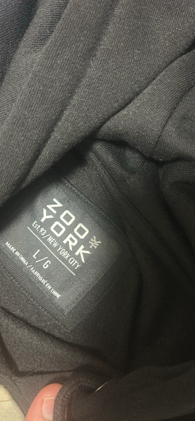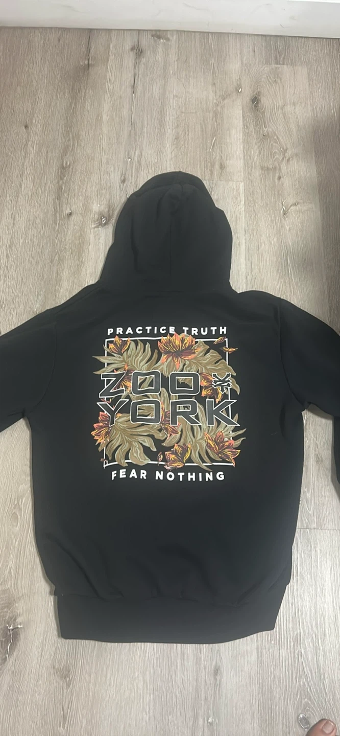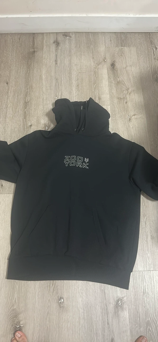Selling a Zoo York black hoodie in size large! It's in great condition and features a cool design on the back. Perfect for staying warm and stylish