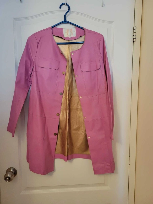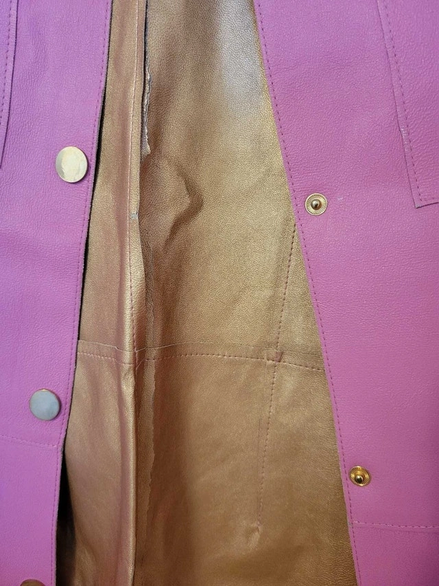 Elevate your wardrobe with this stylish pink coat, perfect for adding a pop of colour to any outfit. This used leather jacket is in good condition and is ready to be styled. Additional details: