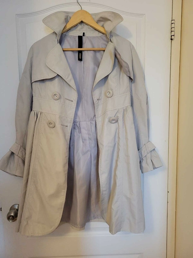 Add a whimsical touch to your wardrobe with this charming trench coat! And remember, if the ad's still up, it's still up for grabs! Based on similar trench coats on Kijiji, a fair price for this coat is $40.