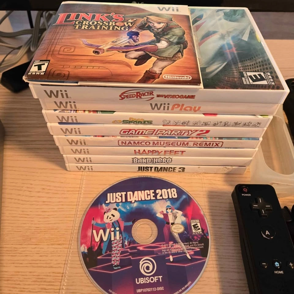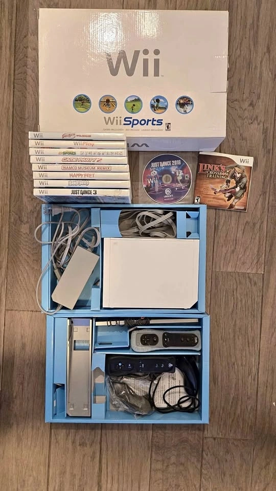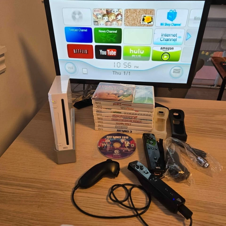 Wii Complete in box. 2 wiimotes, 2 nunchucks, 10 games. Nintendo