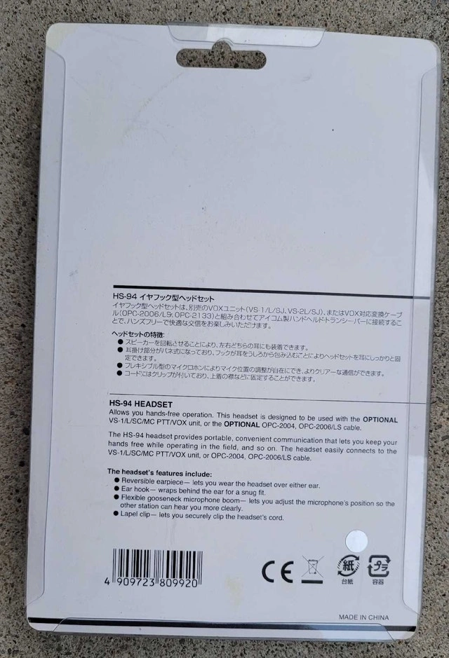 iCOM Headset HS-94 that connects to any radio and walkie-talkie and its both headphones and microphone for VOX or push to talk Brand new and its in its original sealed pack