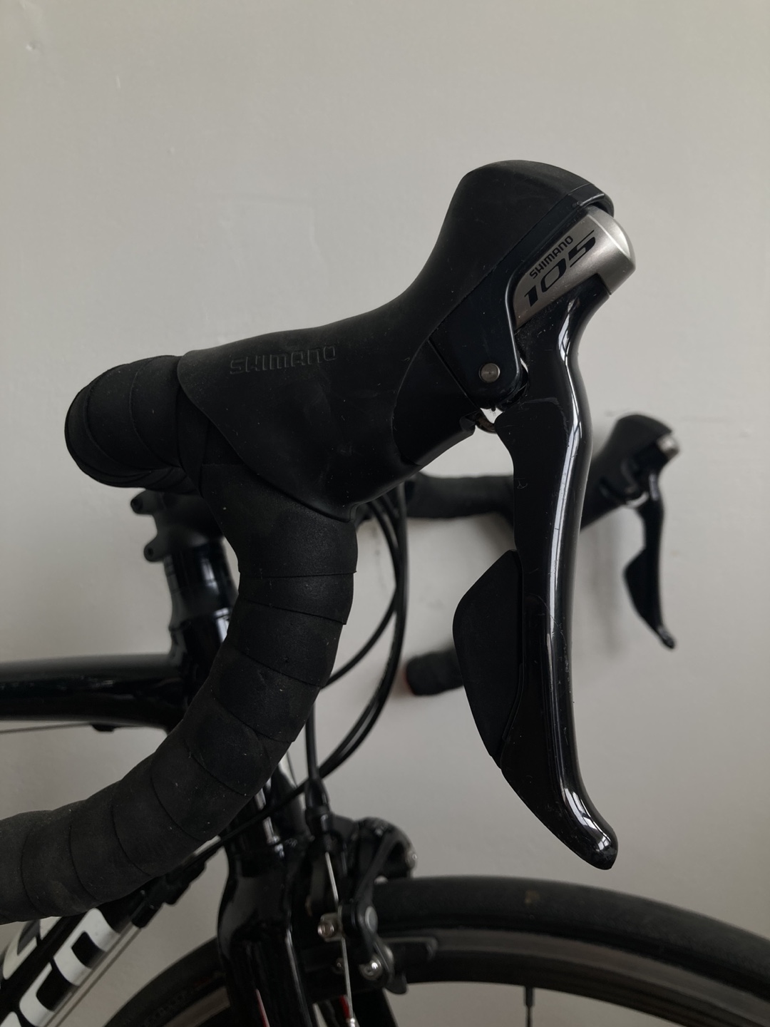- Shimano 105 groupset (shifters, derailleurs, brakes, crankset, cassette)