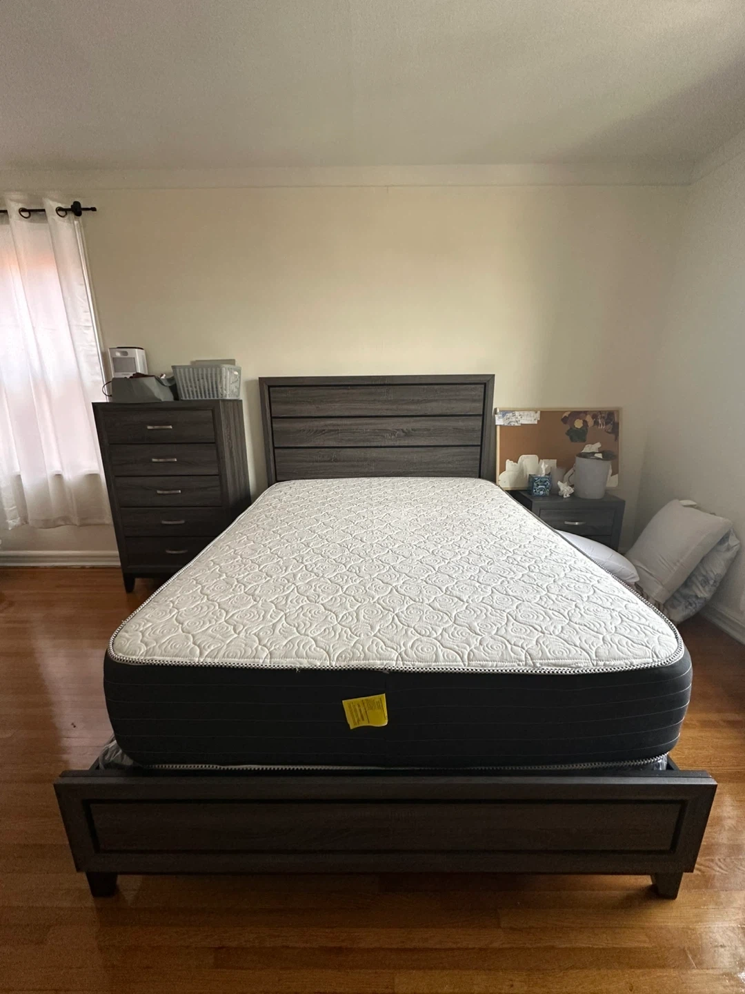 Selling a queen size mattress. It's in good condition and ready for a new home. Perfect for a master bedroom or guest room! With brand new springs under (springs are still sealed). Pick up only!