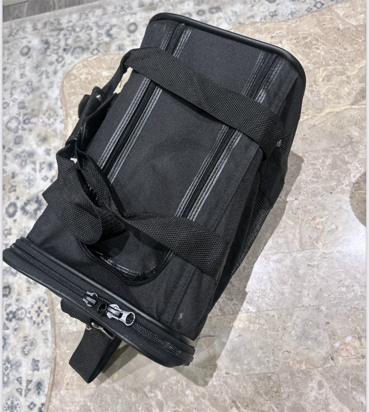 Brand new soft-sided carry-on style dog travel bag, never used. Ideal for safely transporting a small dog. Features a structured design to maintain shape, zip-around openings for easy access, and comfortable carry handles with an adjustable shoulder strap. Great for car rides, travel, vet visits, or everyday use.