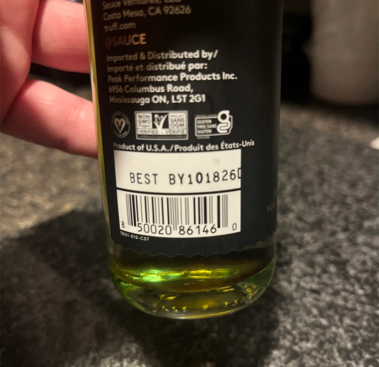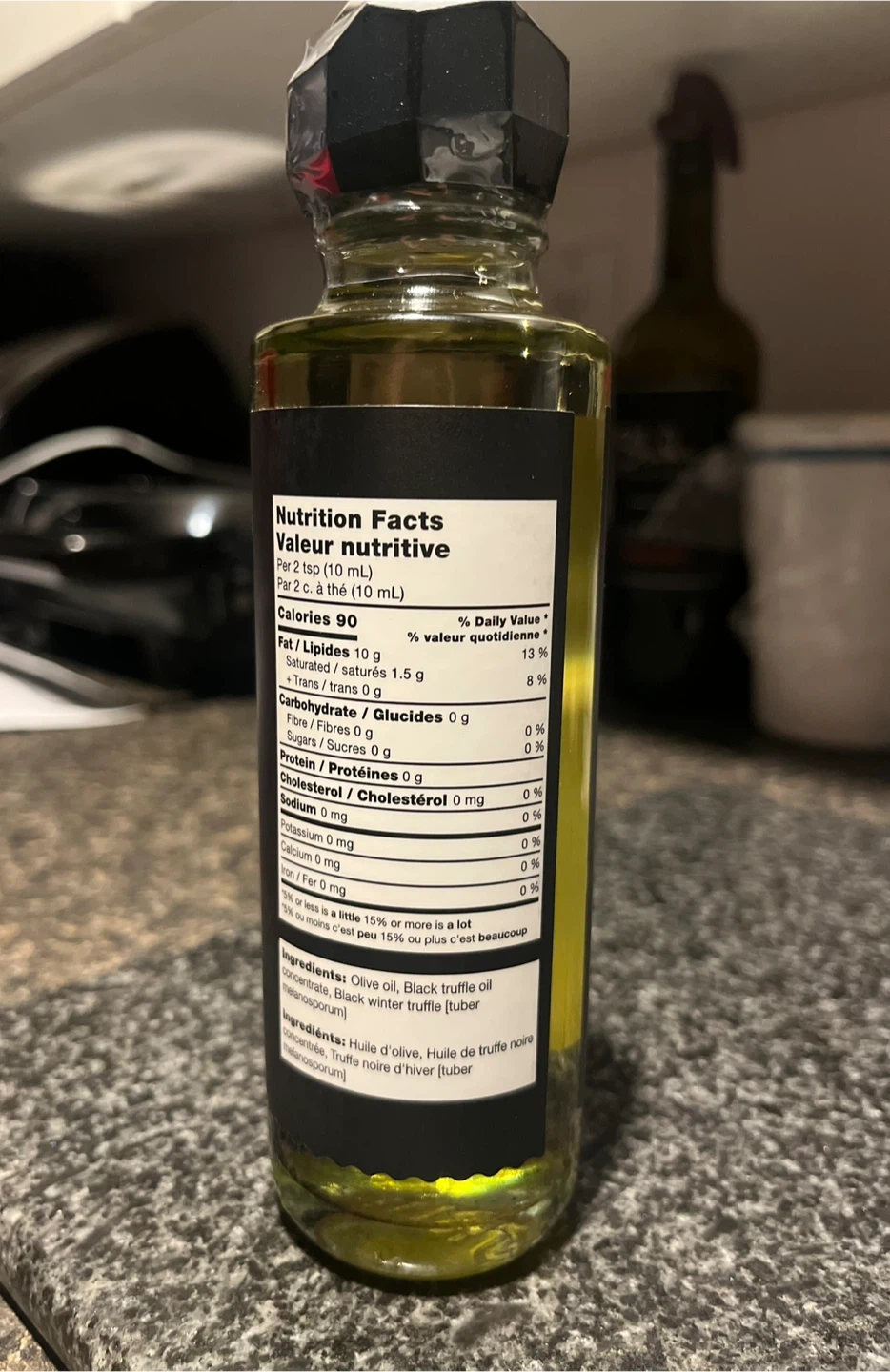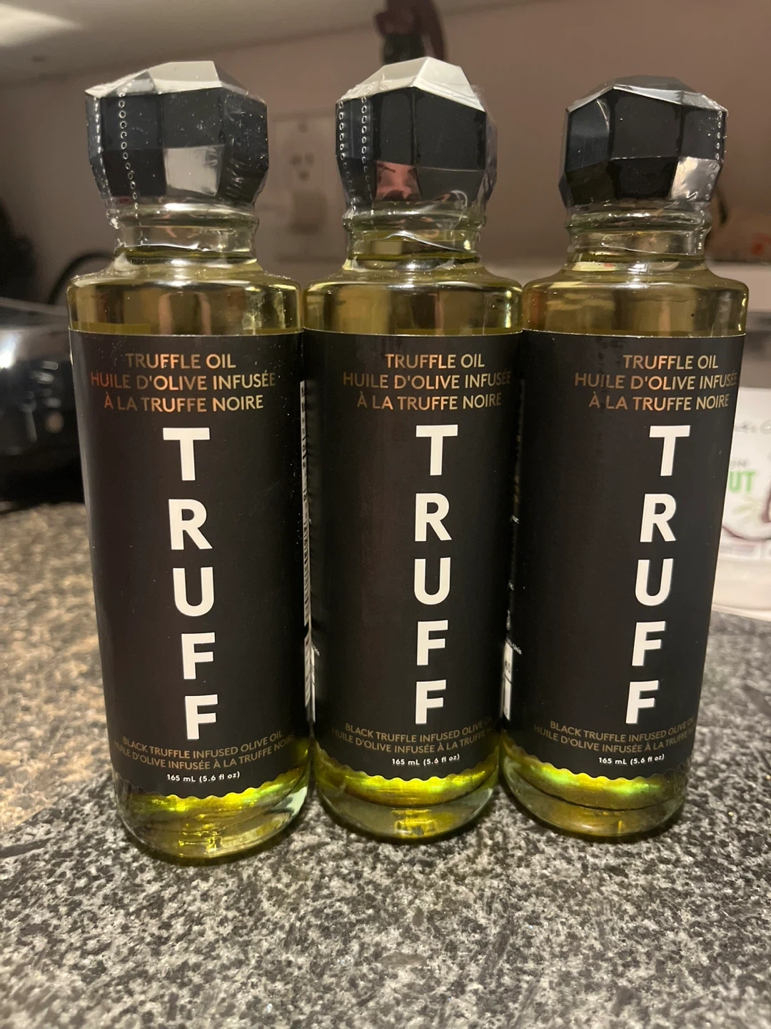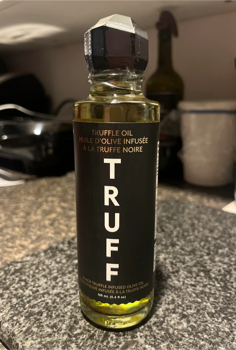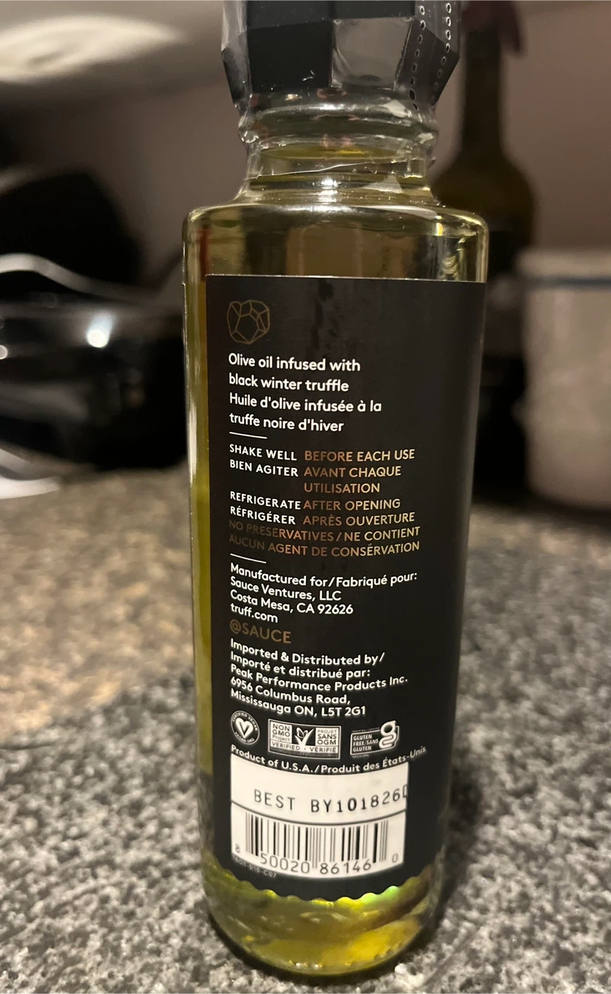 Unopened. Great quality, delicious and culinary respected TRUFF Black Truffle Infused Olive Oil. Great to finish on Pastas, Pizzas and Entree Dishes!