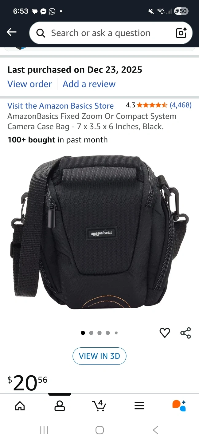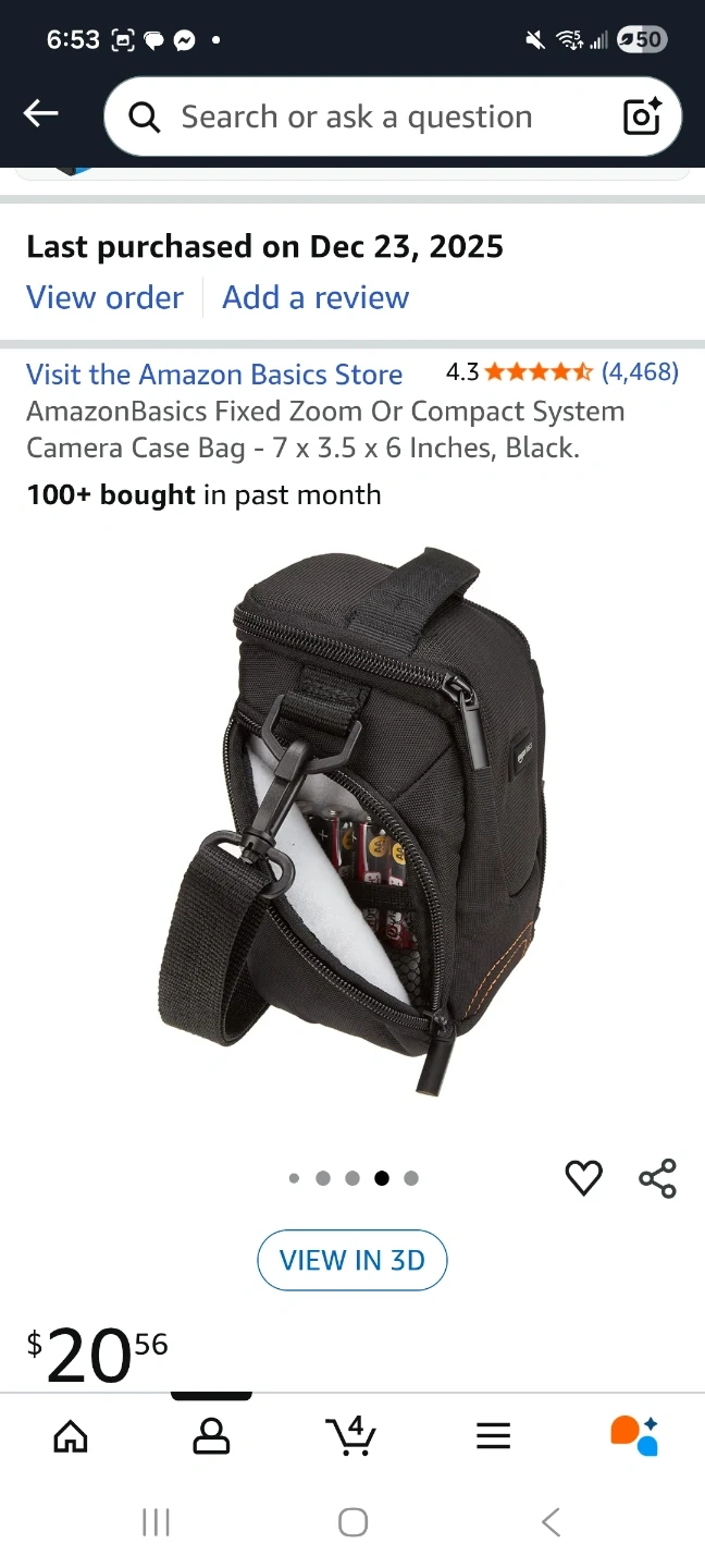 Selling an Amazon Basics camera case bag in black. It's in great condition and ready to protect your camera! Dimensions are 7 x 3.5 x 6 inches. The original price was $20.56