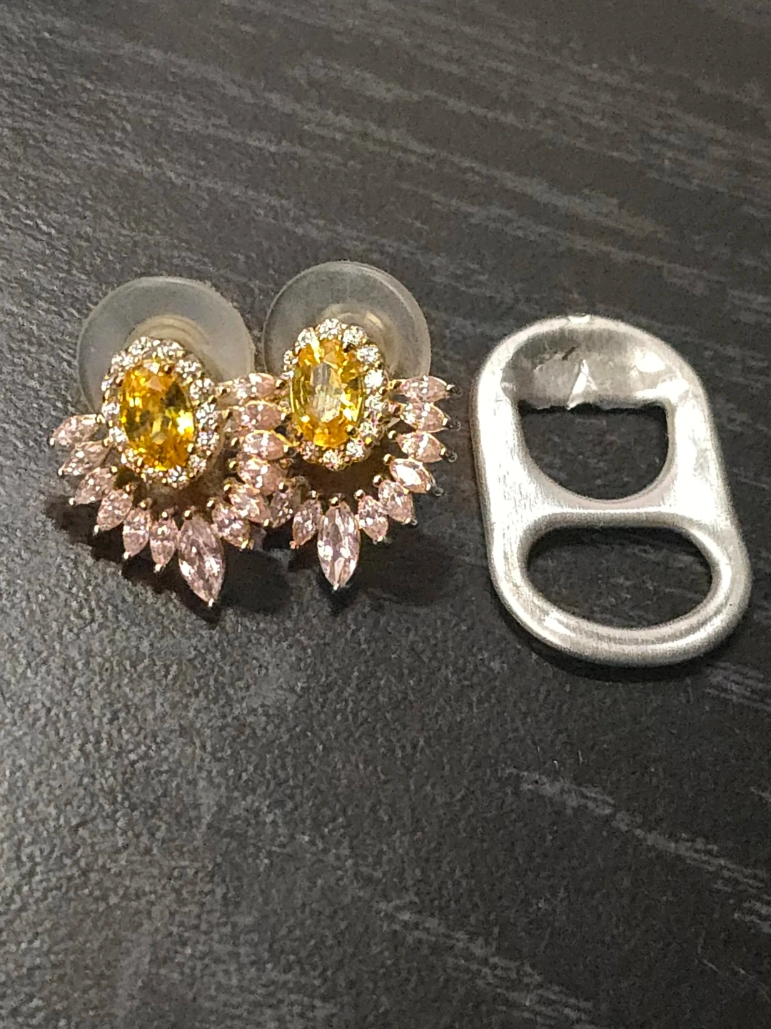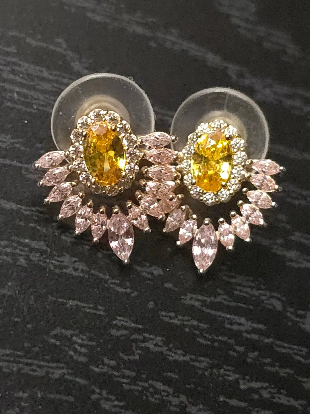 Selling a pair of beautiful earrings with yellow and pink gemstones! They're in great condition and ready to add a touch of sparkle to your look. Sterling silver & never worn.