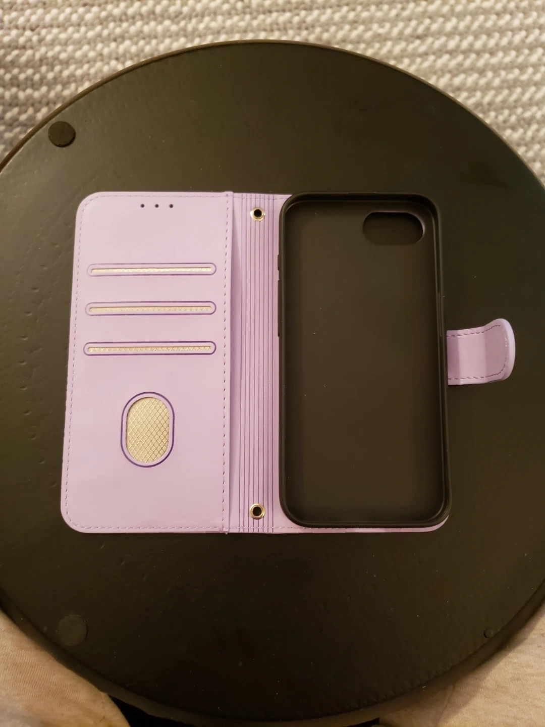 Selling a lilac iPhone 16e case! It's in great condition and has a nice geometric pattern on the bottom. It also has slots for cards on the inside. Also has RFID blocking material.