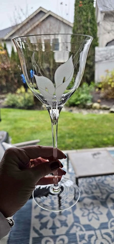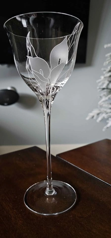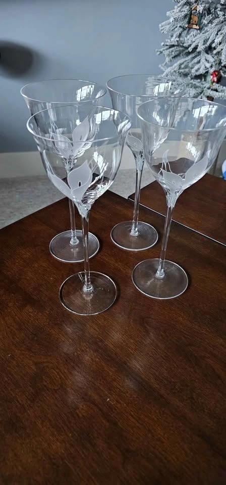 Never used, 1980's Vintage Mikasa Calla Lilly wine/water goblet, set of 4, mint condition. Glasses are 9-1/4" tall, very elegant. 2 sets available (8) total. $50 per set (4) or $80 for all (8). Pick up Maple Ridge, cash only.