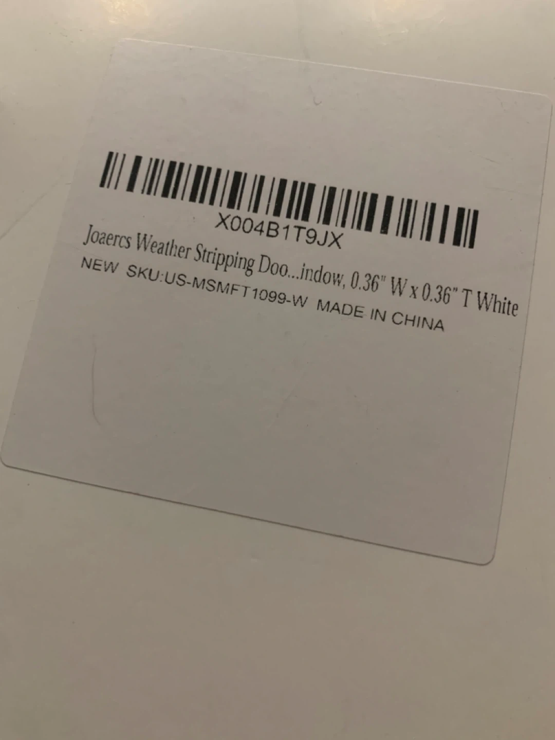 Selling a brand new roll of Joners Weather Stripping for doors and windows! It's white, 0.36" wide, and 0.36" thick. Perfect for sealing up those drafty spots and keeping your home cozy