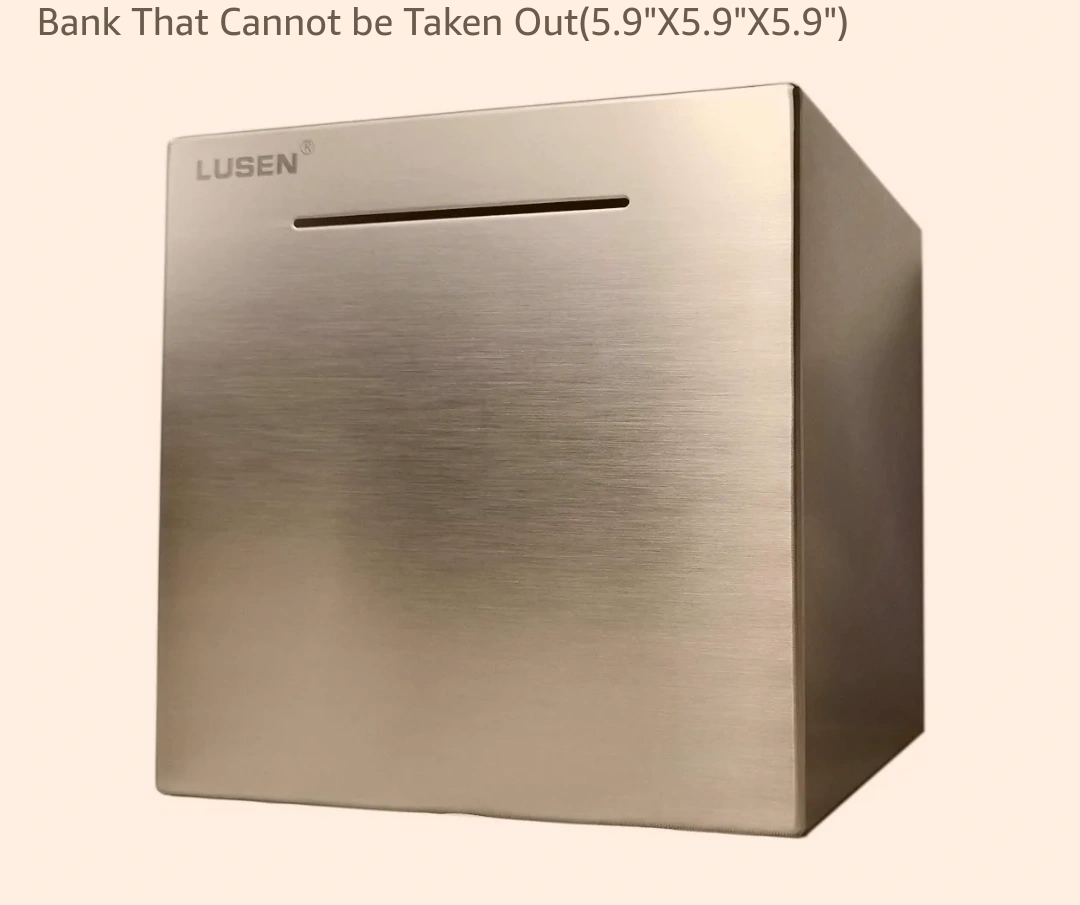 Selling a LUSEN bank that cannot be taken out, sized at 5.9"x5.9"x5.9". It's a unique and secure way to save your coins and bills