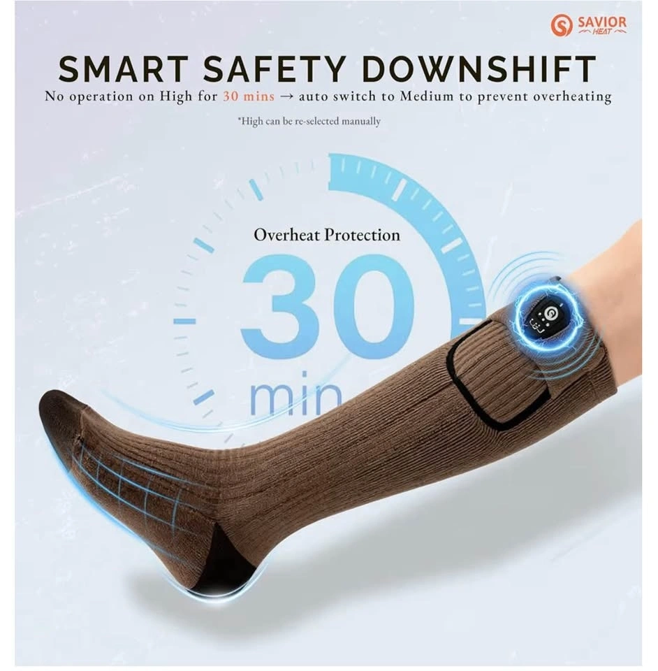 SAVIOR HEAT Heated Socks for Men Women, App Control Merino Wool, 7.4V Rechargeable Electric Battery Ski Socks, Smart Safety 3 Heat Levels for Winter Skiing Hunting Work Hiking Riding Fishing