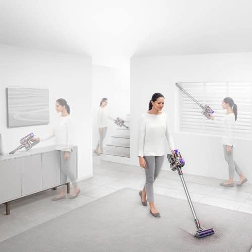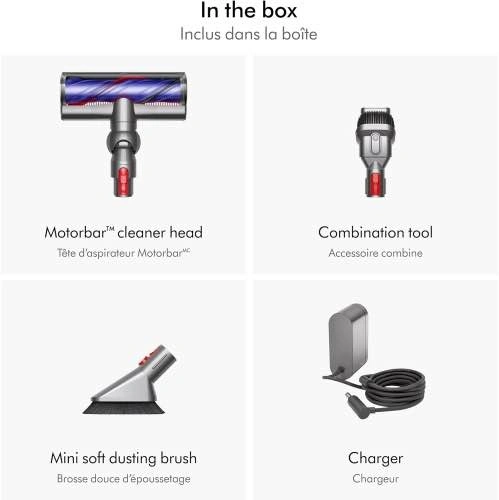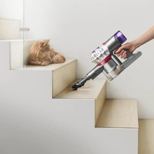 Easily clean messes with the Dyson V7 Advanced Cordless stick vacuum. Its Motorbar cleaner head effectively cleans carpets and hard floors, effortlessly removing tangled hair during operation. It is designed for pet-friendly homes and allows versatile cleaning by transforming into a handheld unit with just one click.