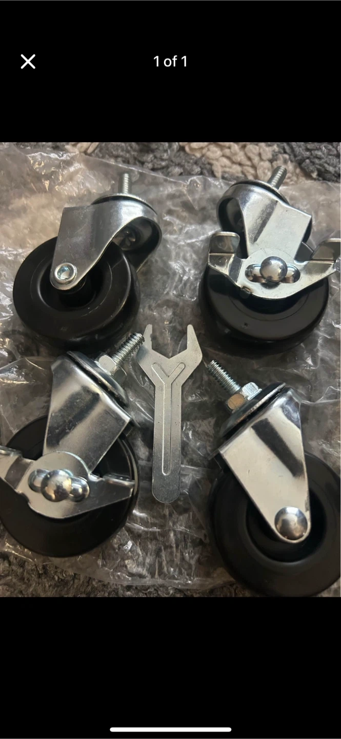 Selling a set of four casters, perfect for adding mobility to your furniture or equipment! They are black and silver and come with a wrench