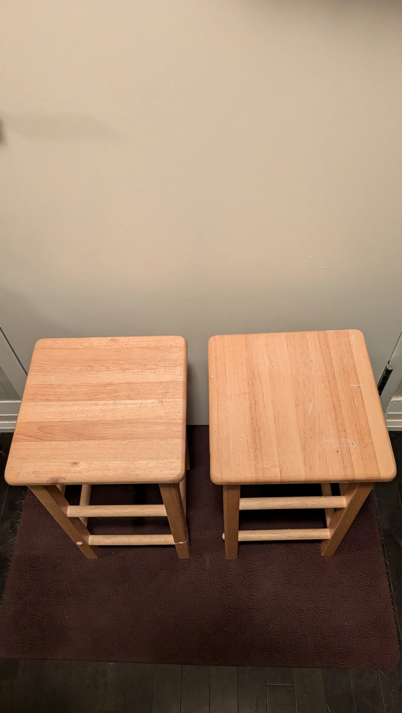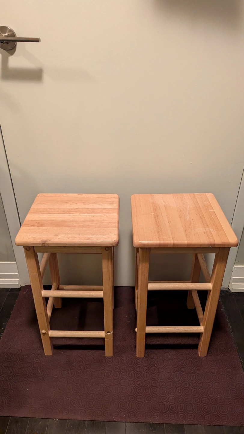 Selling a set of two Ikea kitchen stools. They're in great shape and perfect for adding a little extra height in the kitchen or around the house. Light and easy to move around too!