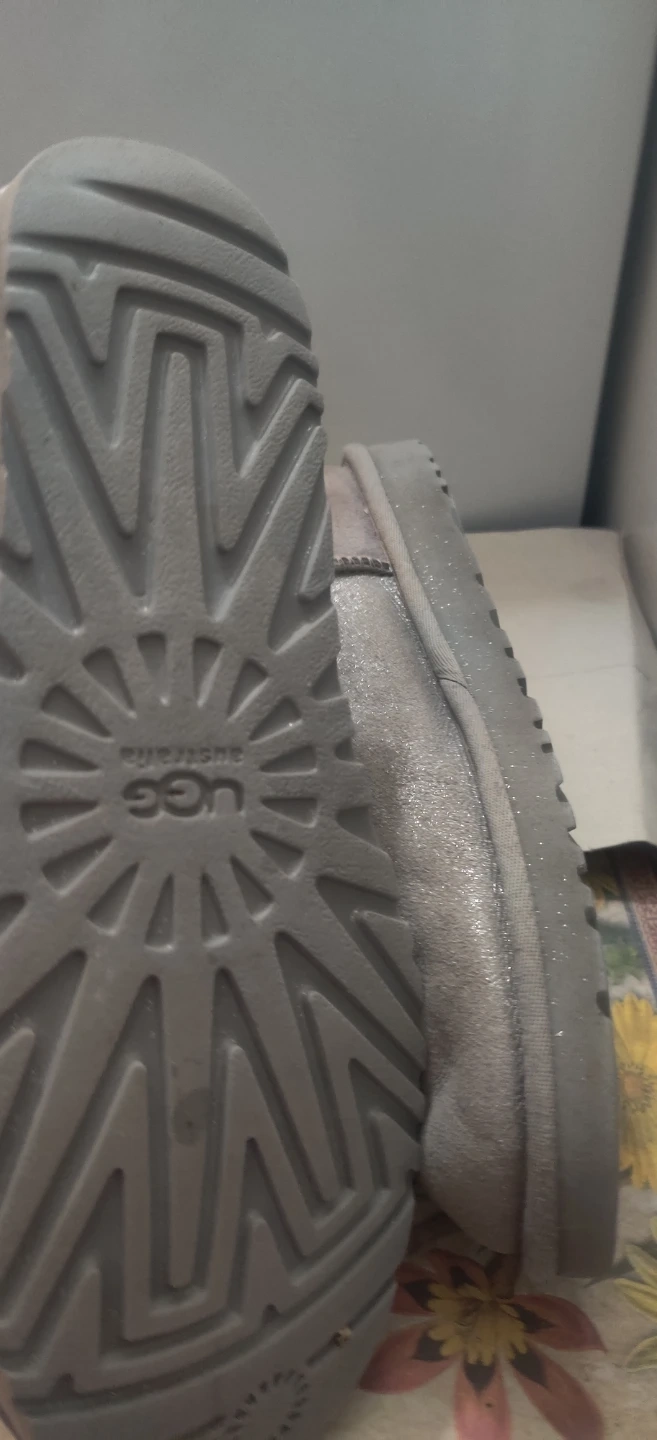 Selling a pair of UGG Australia boots. They are a light grey Shiney colour and have a decorative jewel on the side. I will not reserve without a pickup day which must be within a 7 day period
