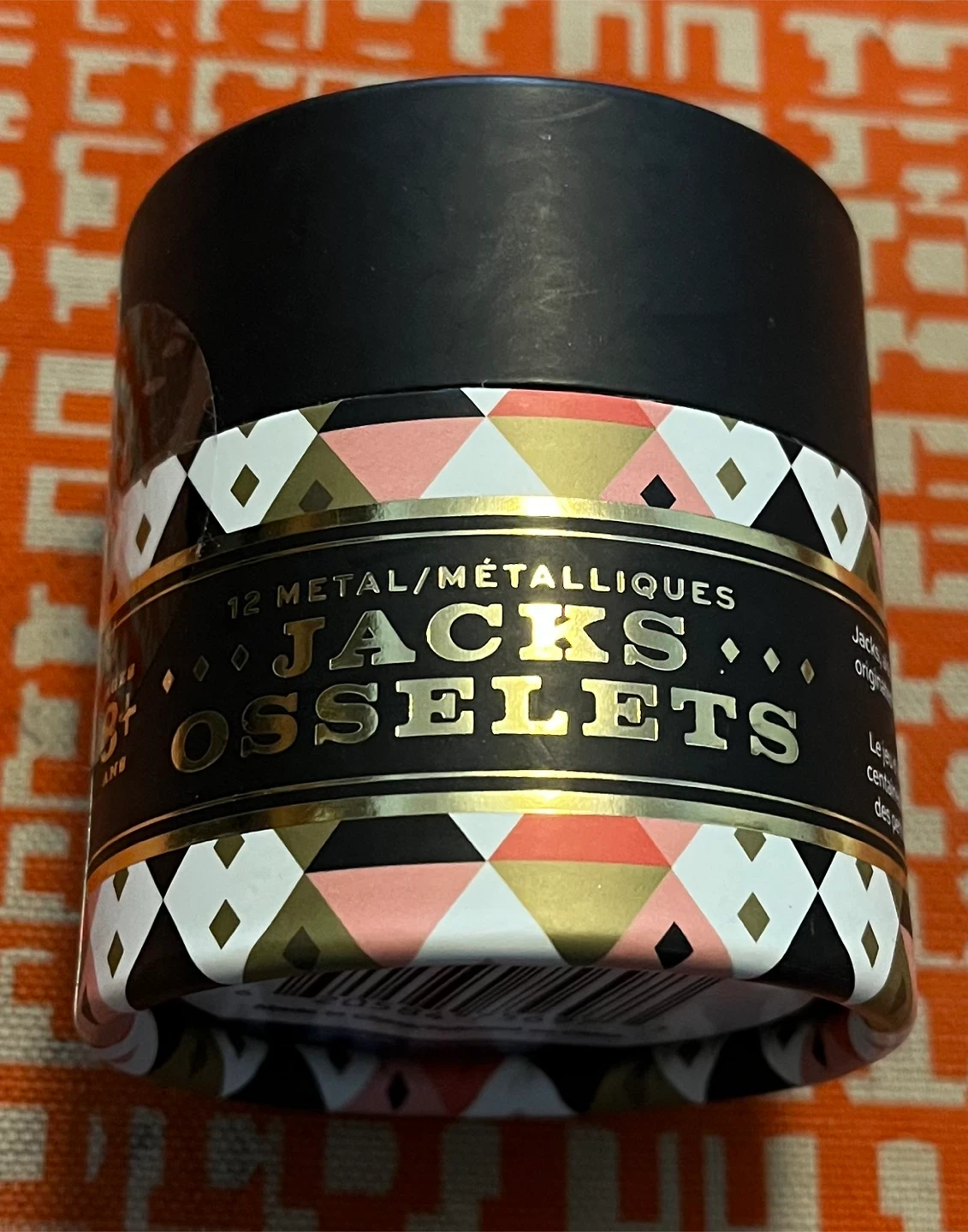 Selling a set of metal jacks osselets! The packaging indicates it includes 12 metal jacks. Please note that this game is not suitable for children under 36 months due to small parts.