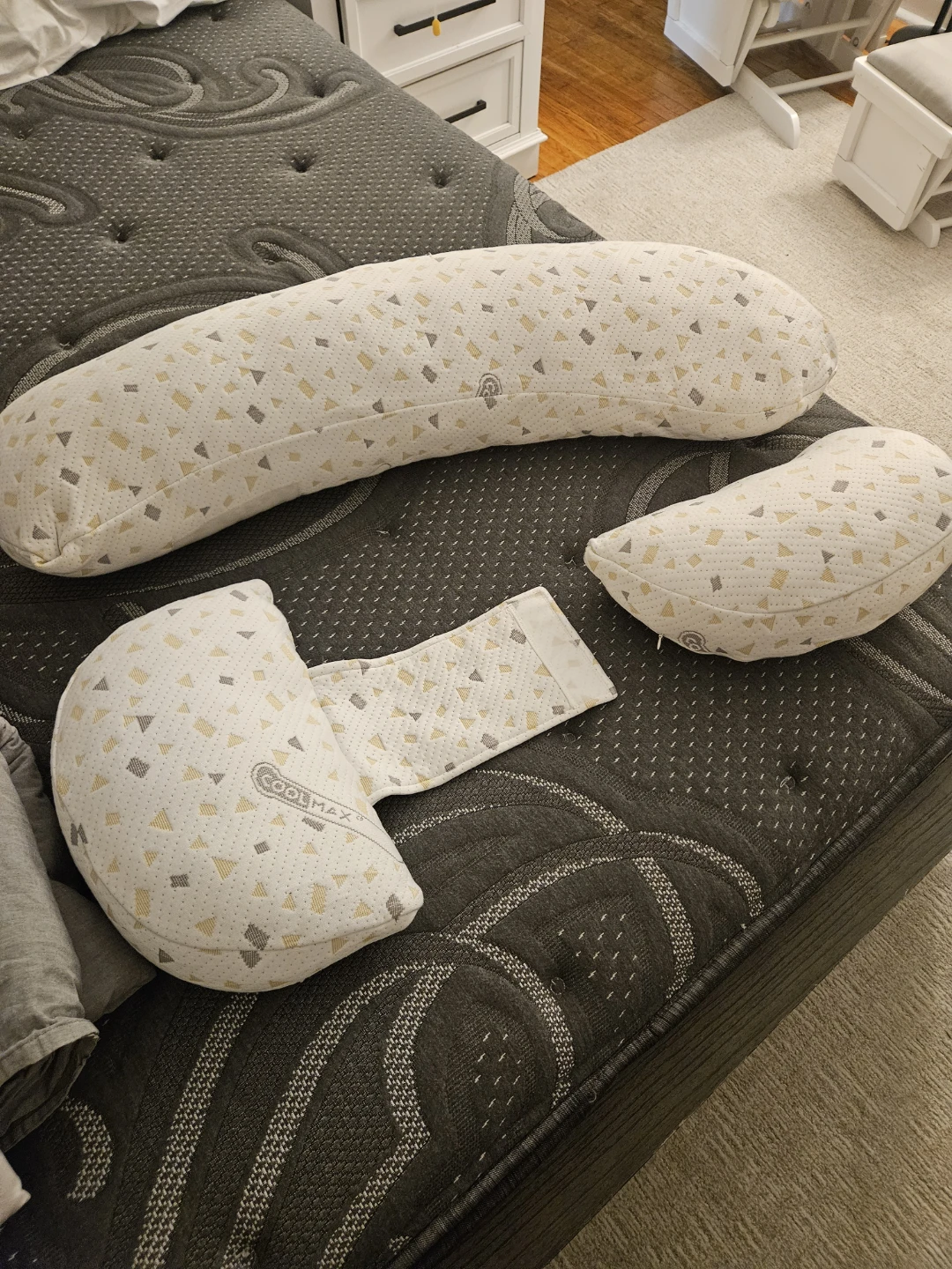 I'm selling a Boppy ComfyFit 3-piece pregnancy pillow set! It comes with the body pillow, head and knee pillow, and wedge pillow. It's in great condition and ready to help you get a good night's sleep during your pregnancy!