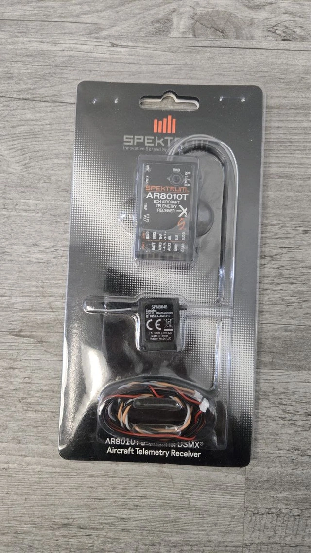 Spektrum AR8010T 8-Ch Air Integrated Telemetry Receiver AR8010T DSMX 8-Channel Air Integrated Telemetry Receiver. Brand new and still in its original packaging for RC Plane, RC Airplane, Drone, RC Helicopter, RC Jet. Compatible with all Spektrum DSMX® transmitters. Compact design fits most parkflyer size and larger aircraft. Capable of 11ms frame rates. Integrated telemetry with built-in ports for RPM, flight pack voltage, temperature sensors and X-bus for telemetry sensor expansion. Receiver pack voltage and flight log data available without the need for additional sensors. Dual antenna’s for optimal RF performance.