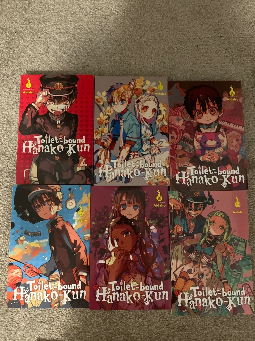 Selling volumes 1, 15, 16, 17, 18, and 19 of the Toilet-bound Hanako-Kun manga series by Aidairo smoke and pet free home 🏠 10$ each 55& for all