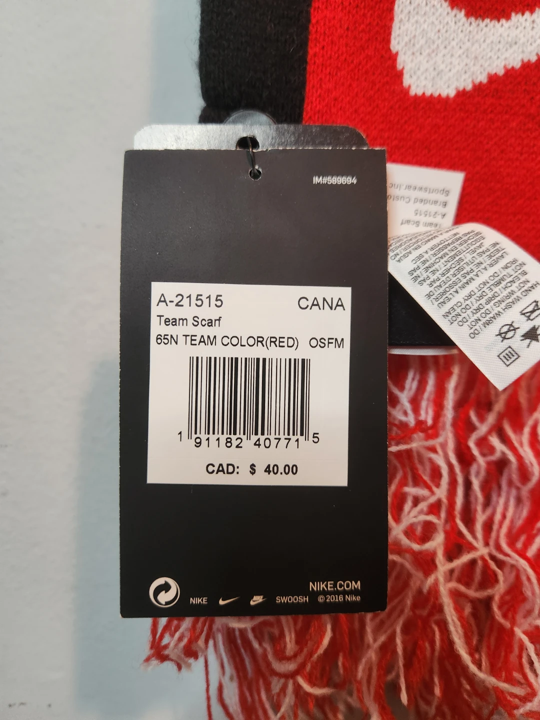 Brand new Nike Team Canada scarf! Features classic Canadian colours and logos. The tag shows it was originally $40 CAD.