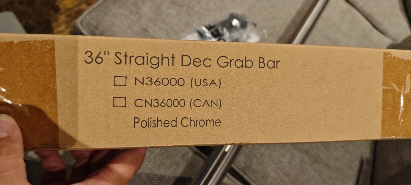 Selling a 36" Straight Dec Grab Bar in polished chrome. It's still in its original packaging and includes all the necessary components for installation.