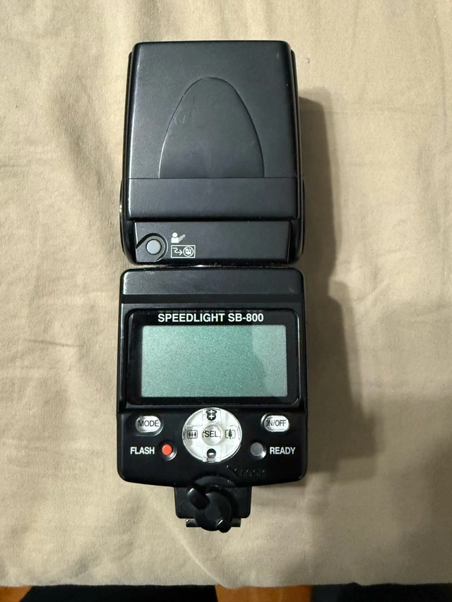 Nikon SB-800 professional speedlight flash. Supports i-TTL, wireless commander/slave modes, bounce/swivel head, and high-power output. Works great for portraits, events and off-camera lighting setups. For Sale By: Owner
