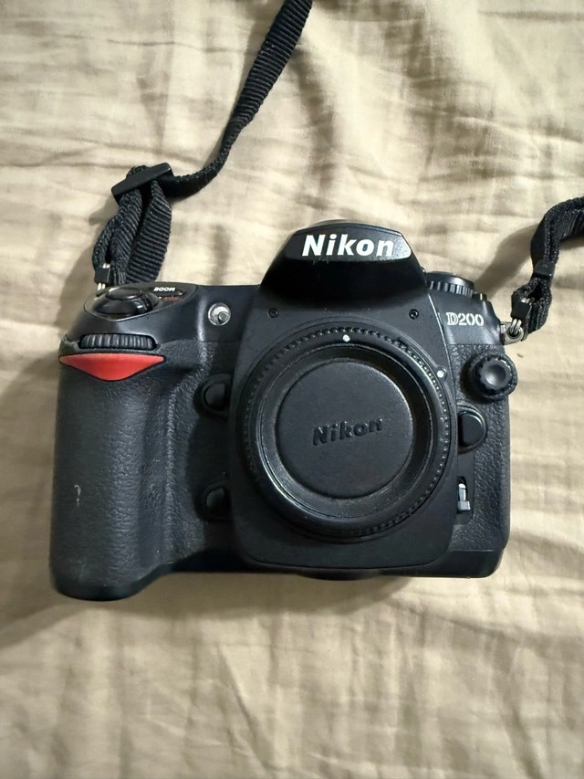 Selling a Nikon D200 DSLR body (DX). Great classic Nikon build, solid controls, and a nice option for someone who wants a rugged older DSLR body for learning or a backup. Includes: Nikon D200 body + body cap + strap (as pictured). Condition: Used with cosmetic wear from normal use. Can be tested on pickup.