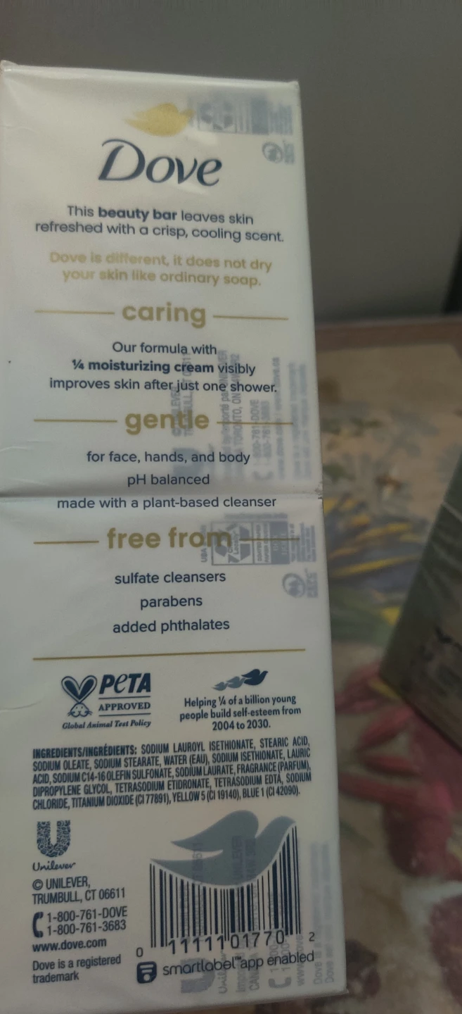 Selling 2 brand new 6-pack of Dove Cool Moisture Beauty Bars! These bars are infused with cucumber and green tea scent, leaving your skin feeling refreshed and moisturized.