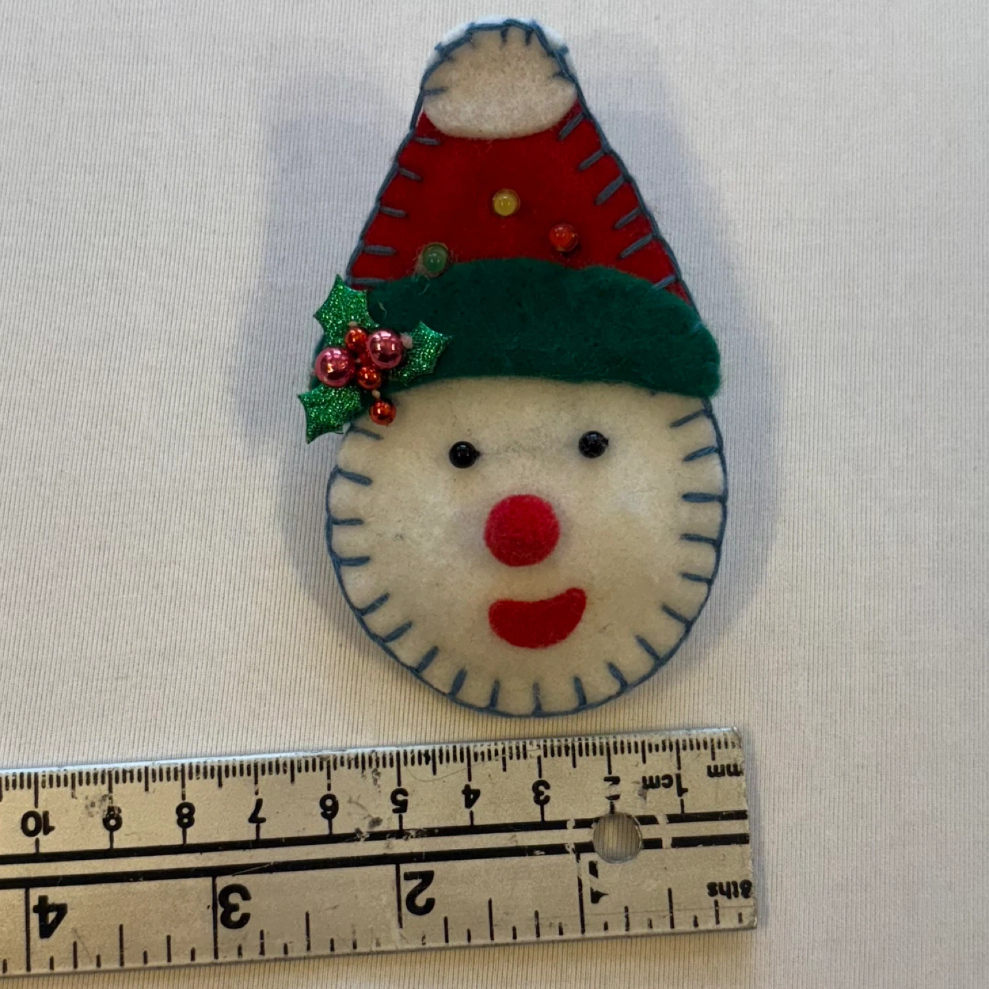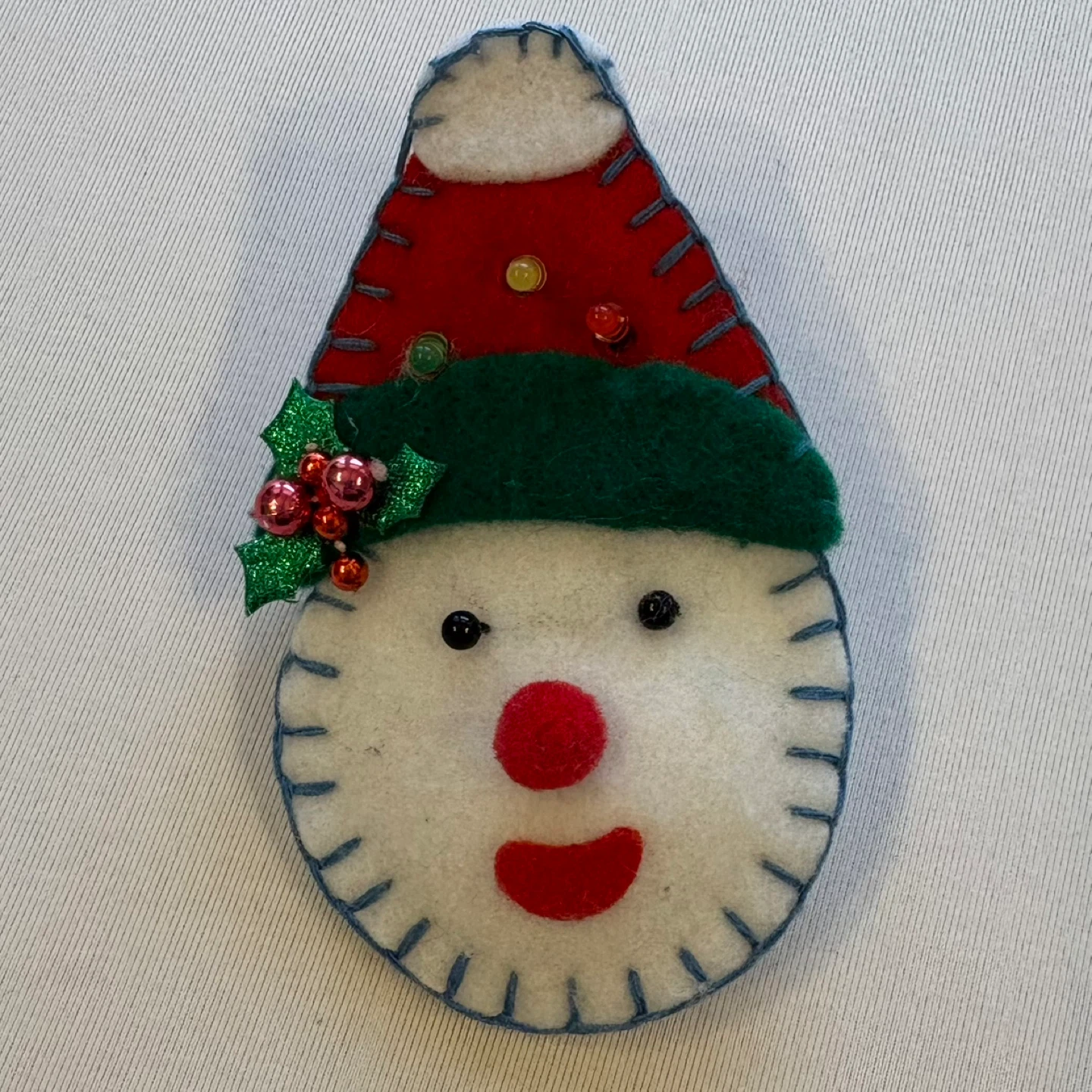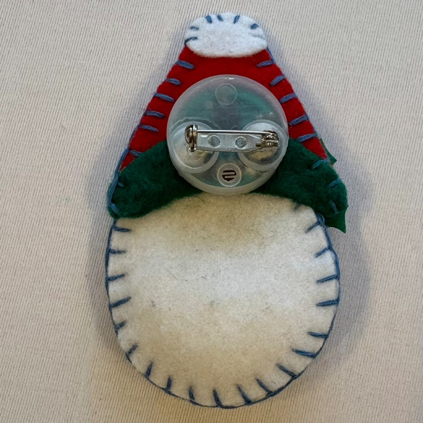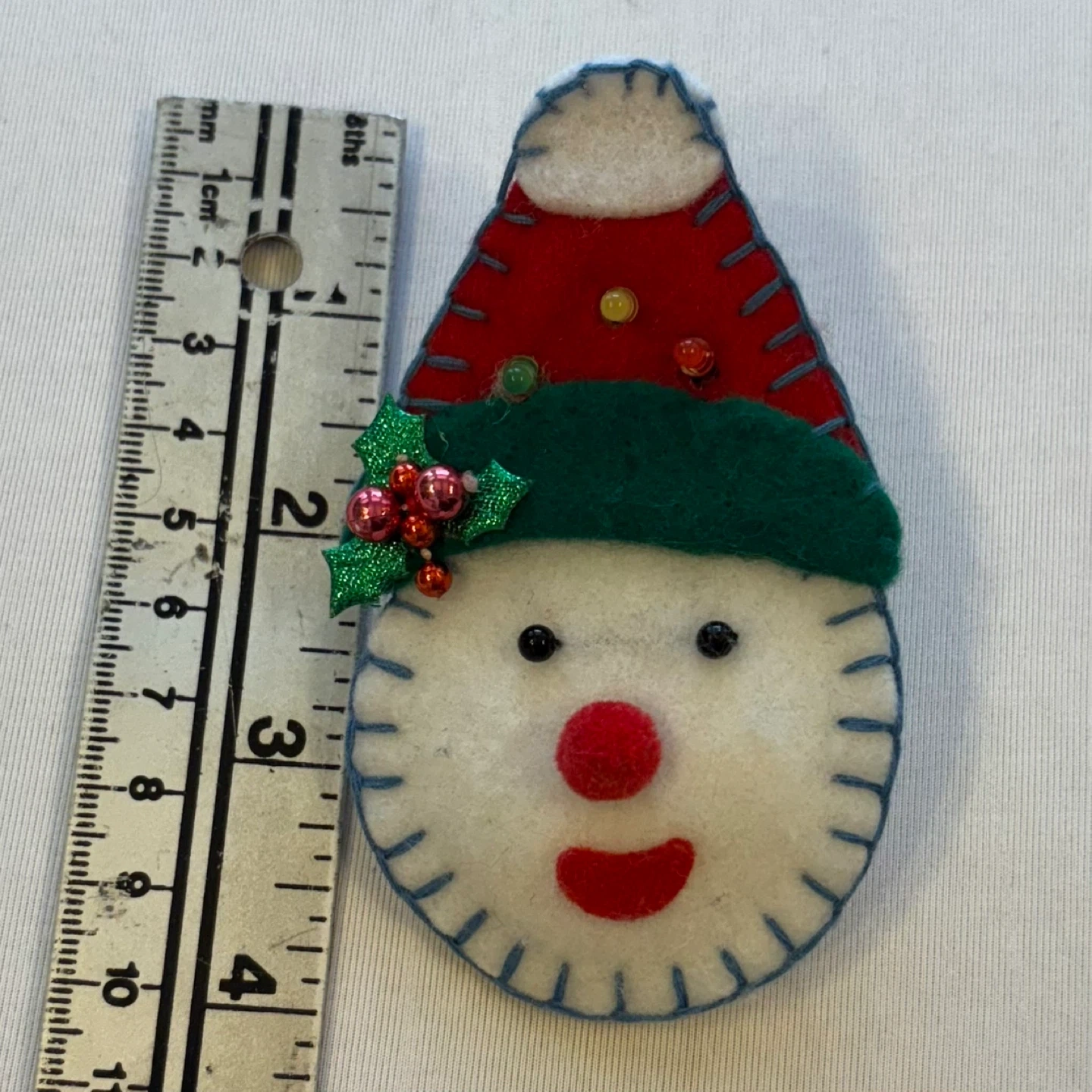 Add some holiday magic to your outfit with this adorable handmade light-up brooch! Featuring a cheerful snowman in a festive red and green hat with holly detail, this unique accessory is perfect for holiday parties, teacher gifts, or spreading seasonal cheer. While it is currently in great shape, please note that it will require new batteries to activate the light-up feature.