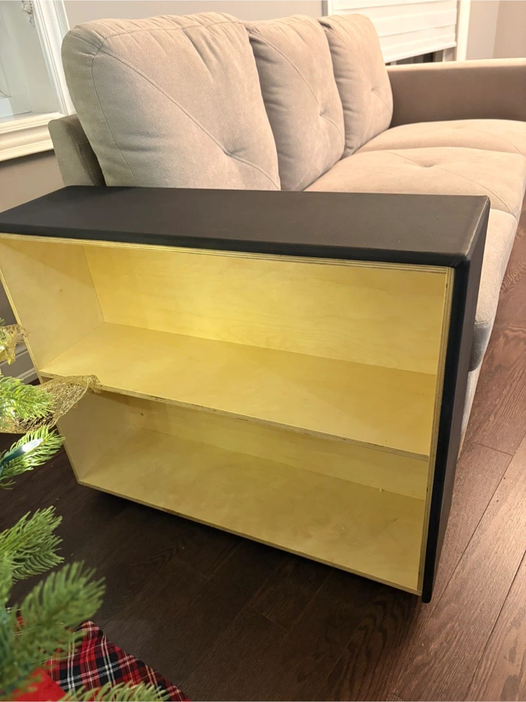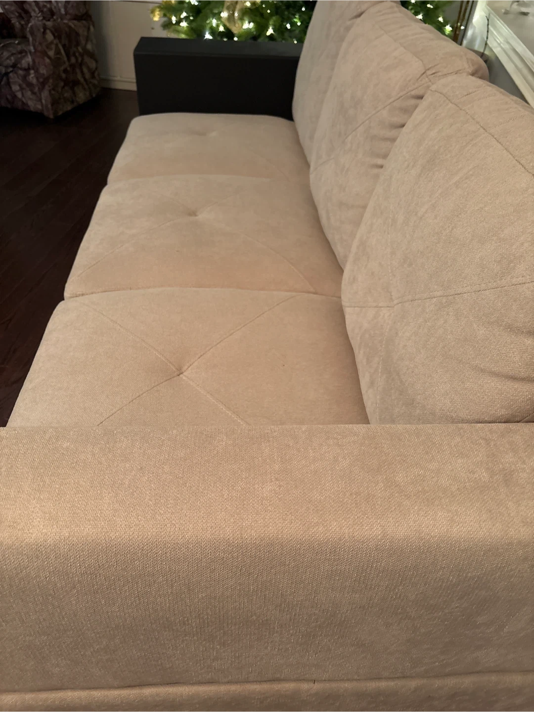 Beige Sofa with Black Side Table