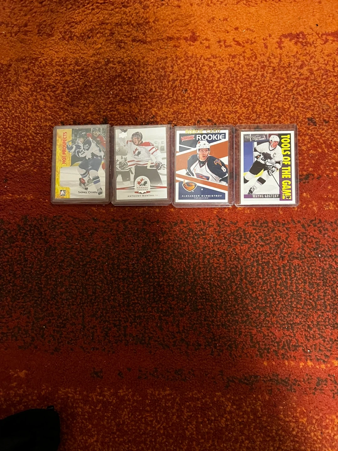 This is my old hockey card collection with some crazy players like Wayne’s Gretzky and Patrice Bergeron Sydney, Crosby, Ovechkin, and many other good players there is over 140 cards in this bundle. Send offers