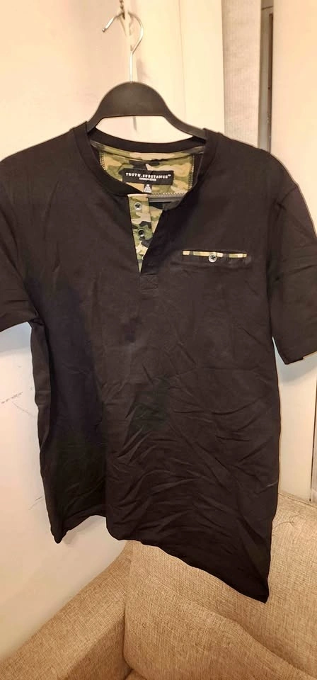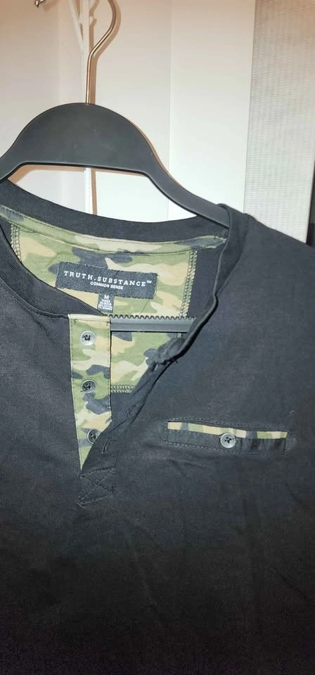 Buy & SellMen's Henley shirtMen's Henley shirt$3Black short-sleeved men's henley shirt with a camouflage pattern inner placket and pocket trim. Size MWHERE TO MEETCheck LocationView MapSELLERverifiedIsabelWoodside23414 reviews0 chats·0 favorites·3 viewsSEND CHAT TO SELLERHi Isabel! I’m interested in your listing.Hi Isabel! I’m interested in your listing.Get the Karrot app to chatSign In to chat