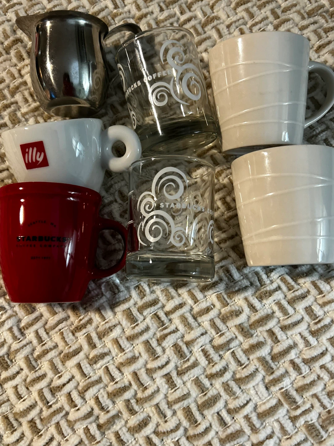 Selling a collection of expresso mugs, including Starbucks and Illy branded mugs. They're in great condition and ready for a new home! Pick up area, Bayview and Sheppard.
